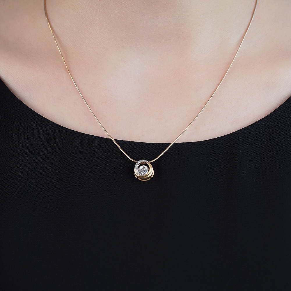 Ювелир Карат Подвеска Кулон серебряный в позолоте с танцующим качающимся фианитом, серебро 925