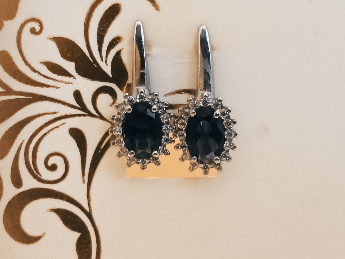 Ювелир Карат Серьги серебряные с сапфиром с.; гранатом с. и фианитами