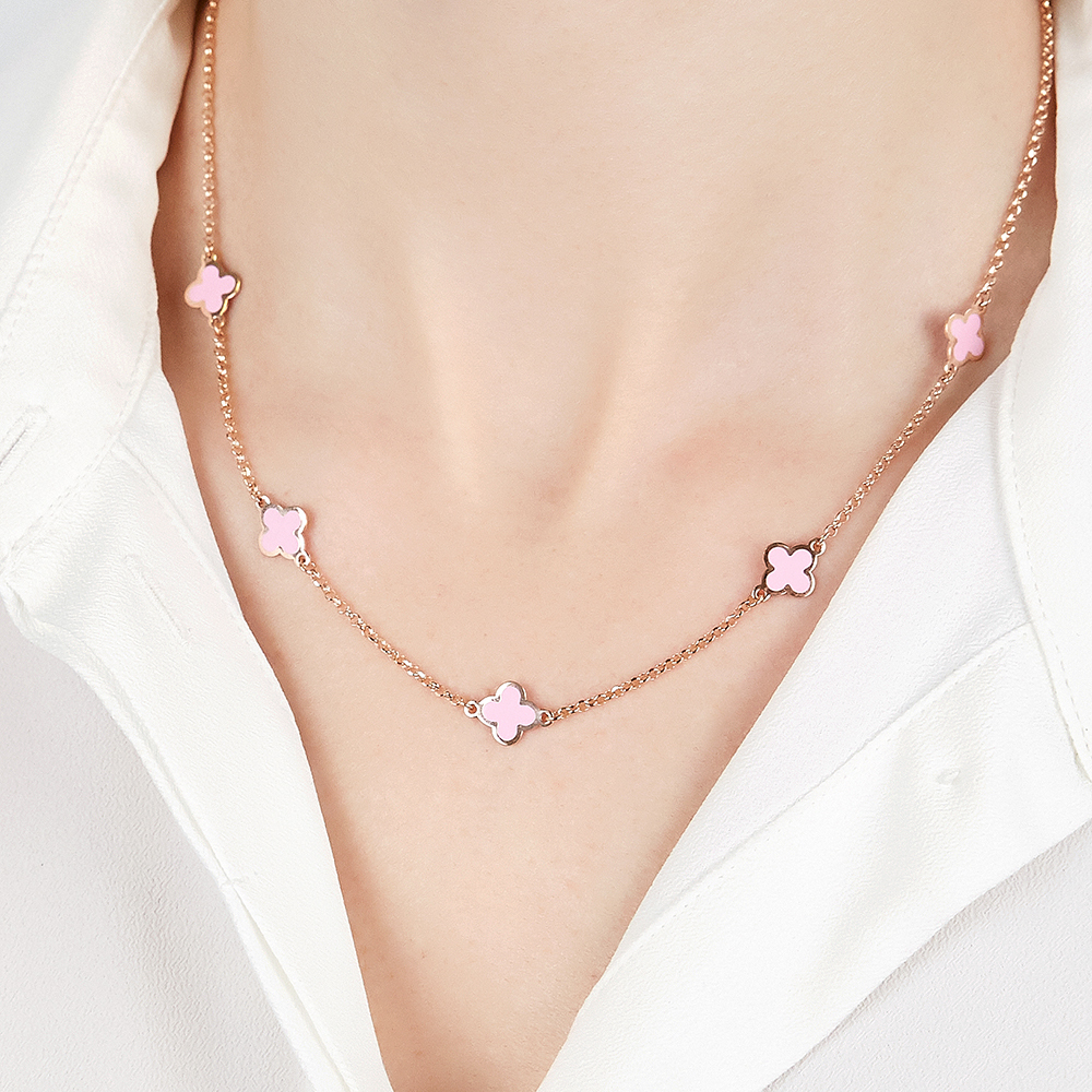 Ювелир Карат Колье 2048014/9ПРГ Клевер серебряное в позолоте с эмалью