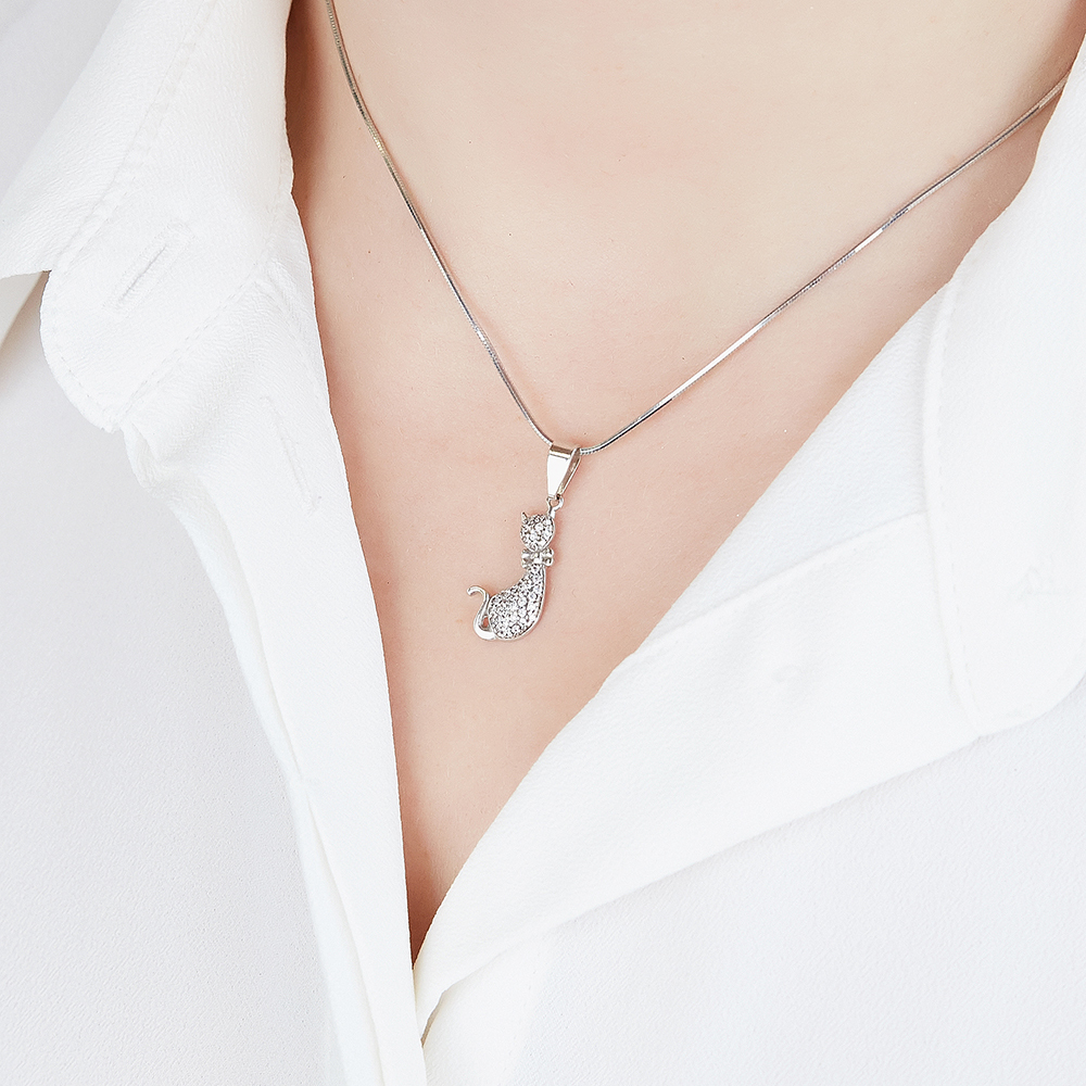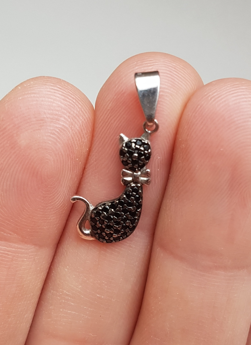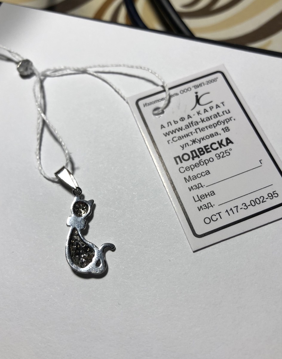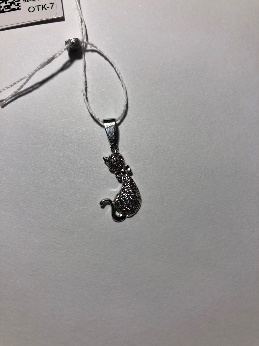 Ювелир Карат Подвеска Кулон серебряный Кошка с фианитами, серебро 925