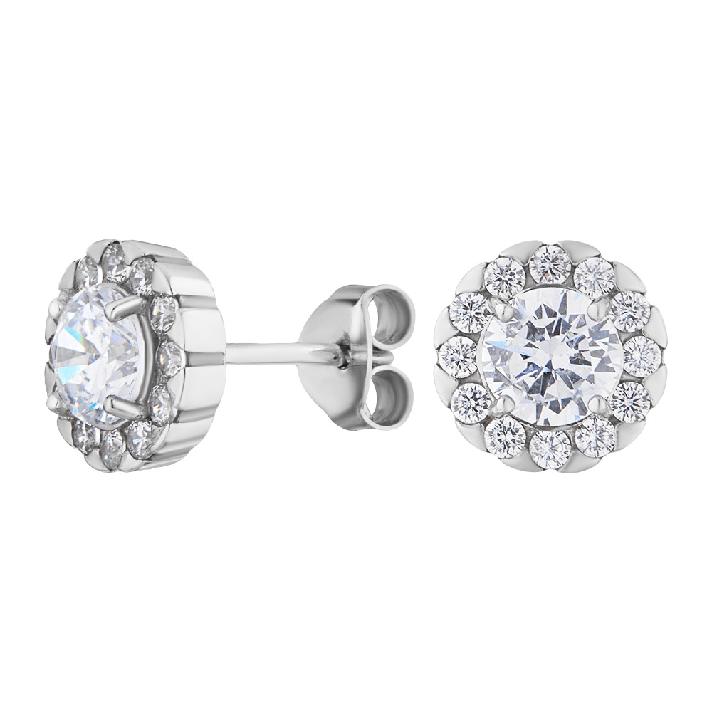 Ювелир Карат Серьги серебряные пусеты, гвоздики "Цветы" с фианитами