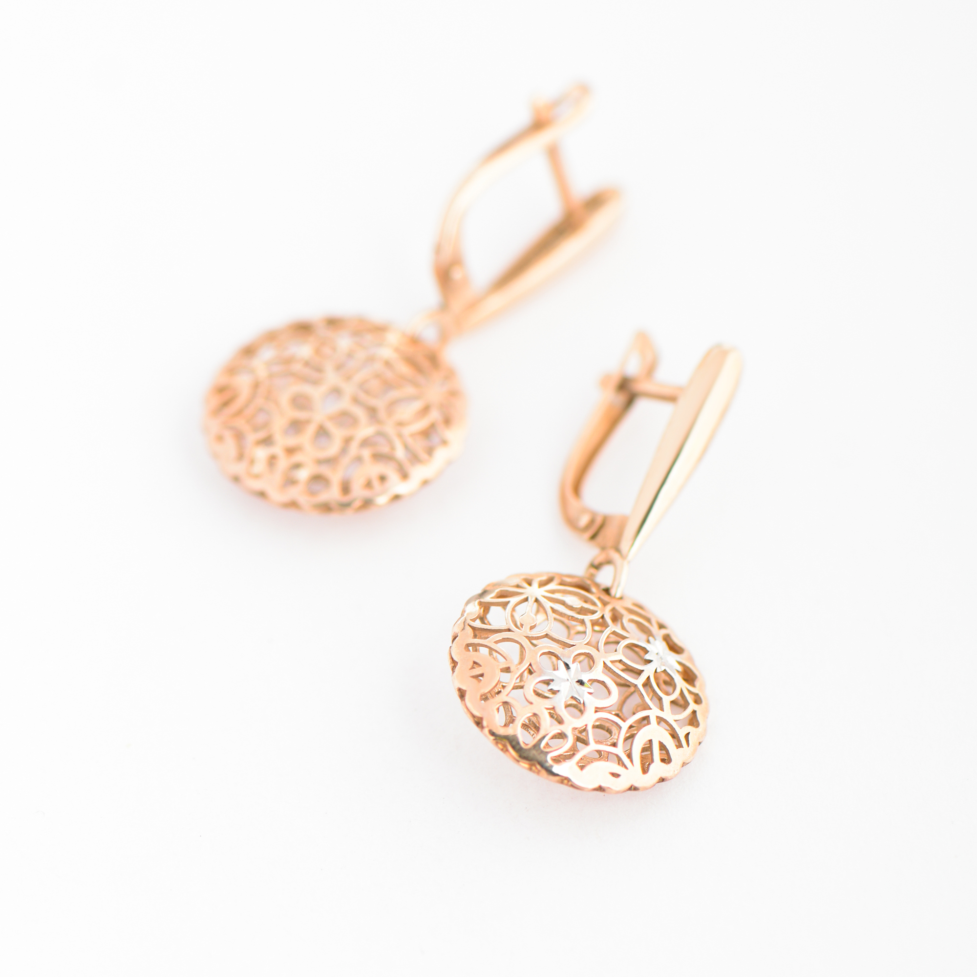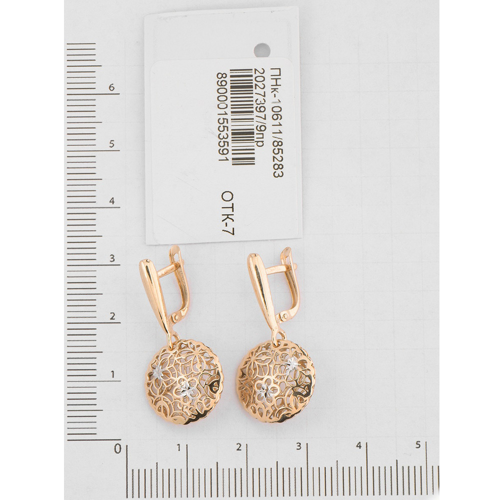 Ювелир Карат Серьги ювелирные серебряные с подвесками "Цветы", серебро 925, родий / позолота