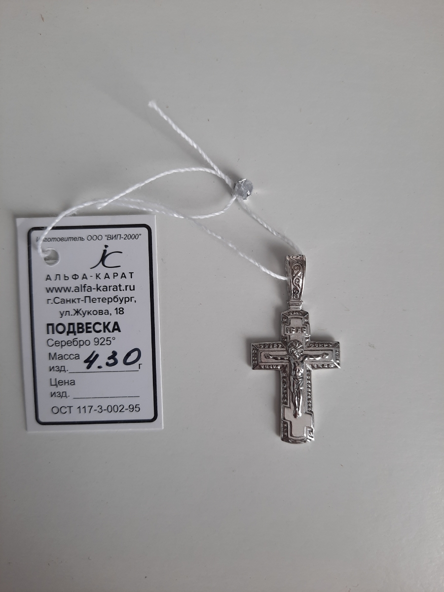 Ювелир Карат Крестик ювелирный серебряный, серебро 925