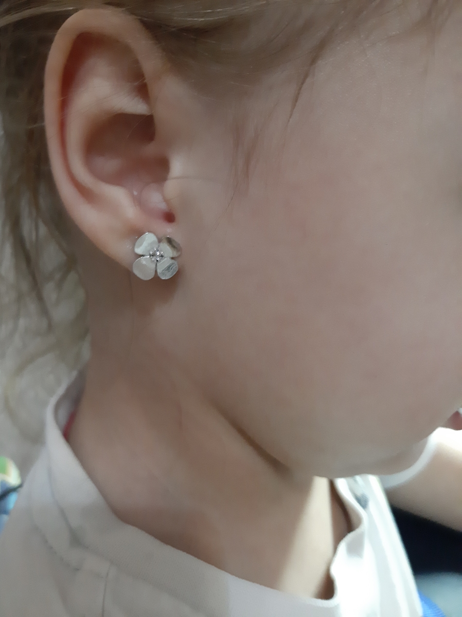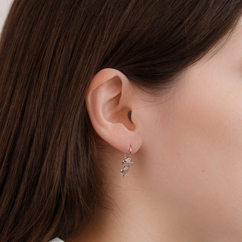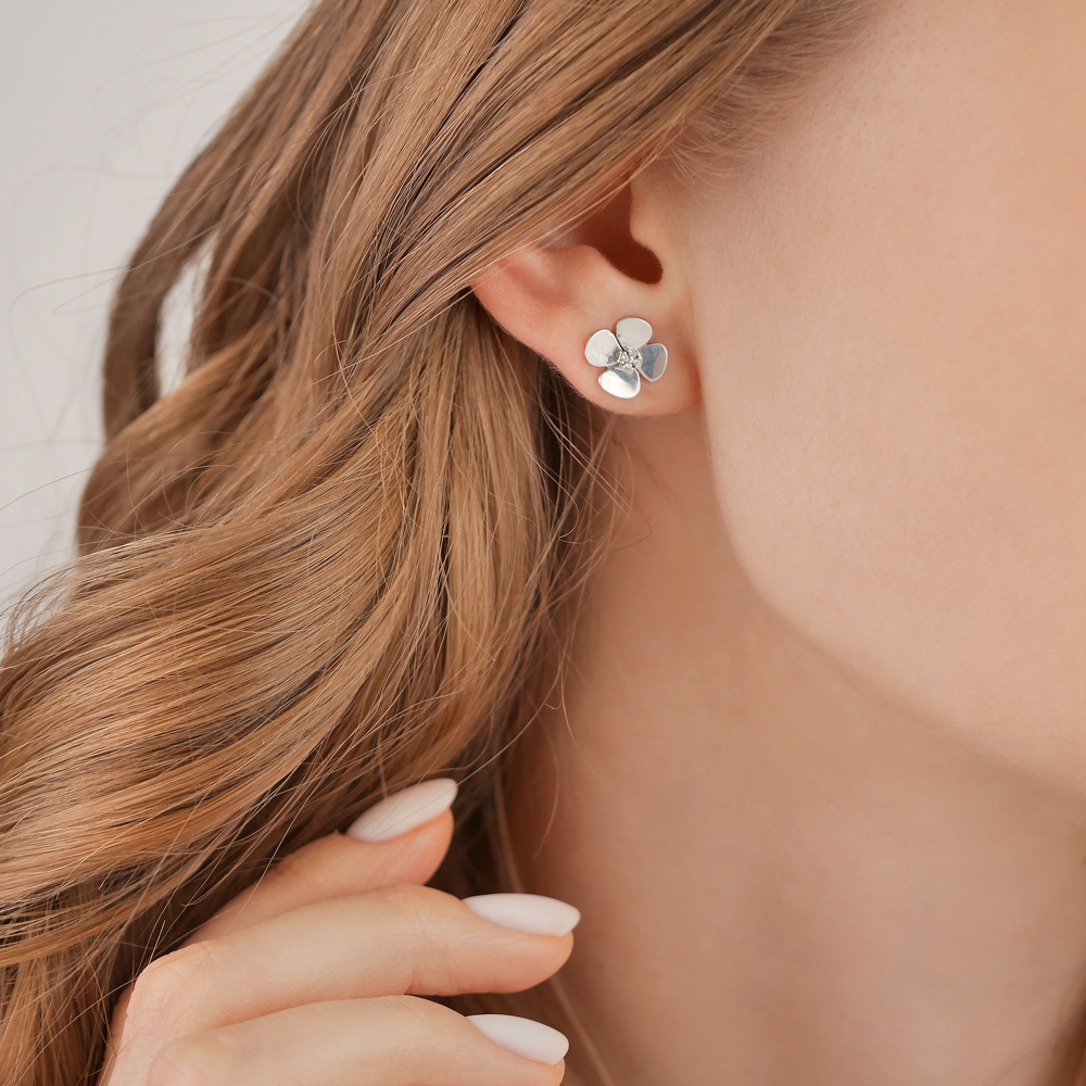Ювелир Карат Серьги серебряные детские пусеты, гвоздики "Цветы" с фианитами, серебро 925