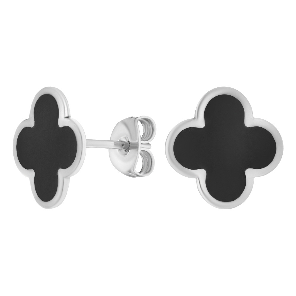 Ювелир Карат Серьги серебряные с эмалью "Клевер" / "Четырехлистник" 2029638/9ЧГ