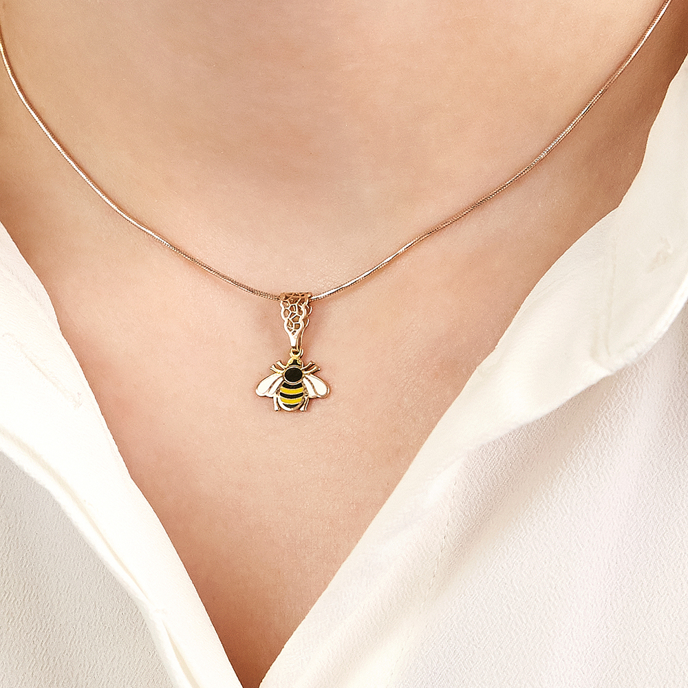 Ювелир Карат Подвеска Кулон серебряный Пчела с эмалью, серебро 925
