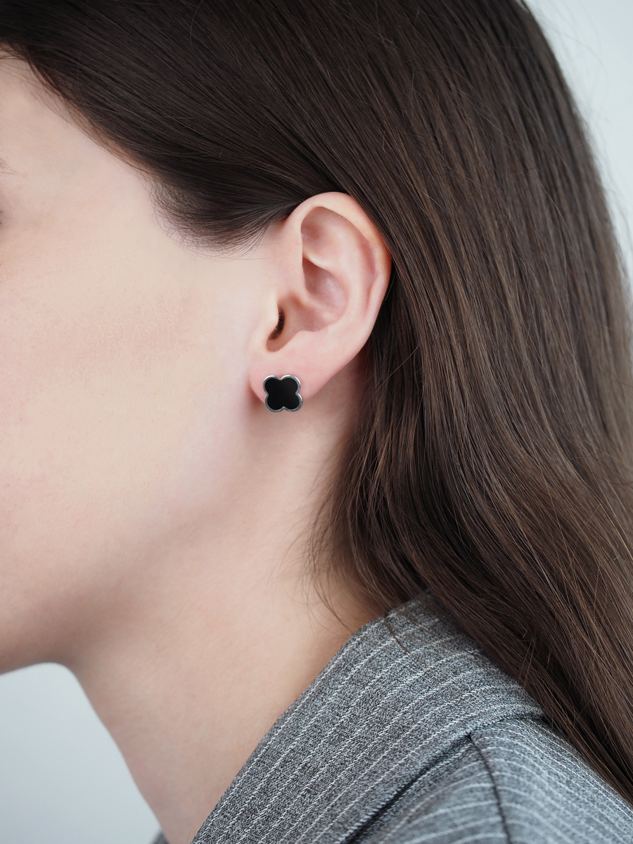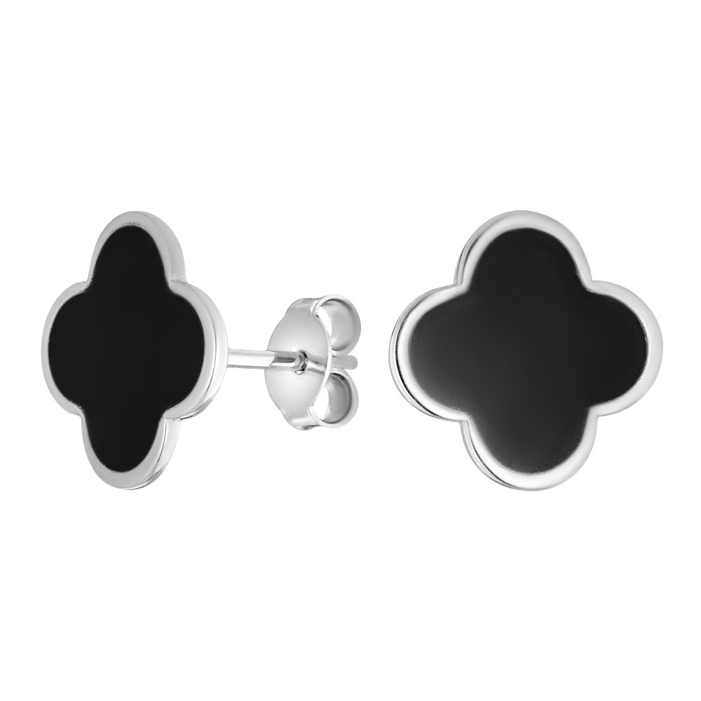Ювелир Карат Серьги серебряные с эмалью "Клевер" / "Четырехлистник" 2029638/9ЧГ