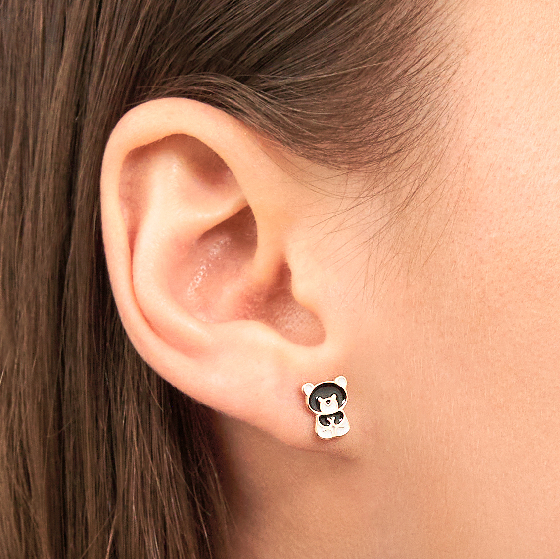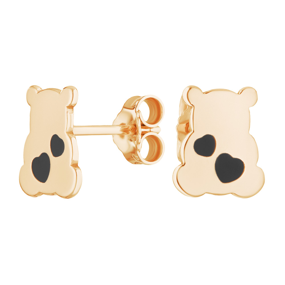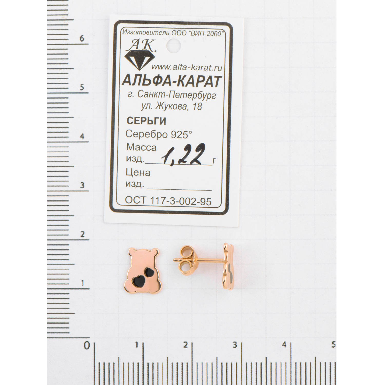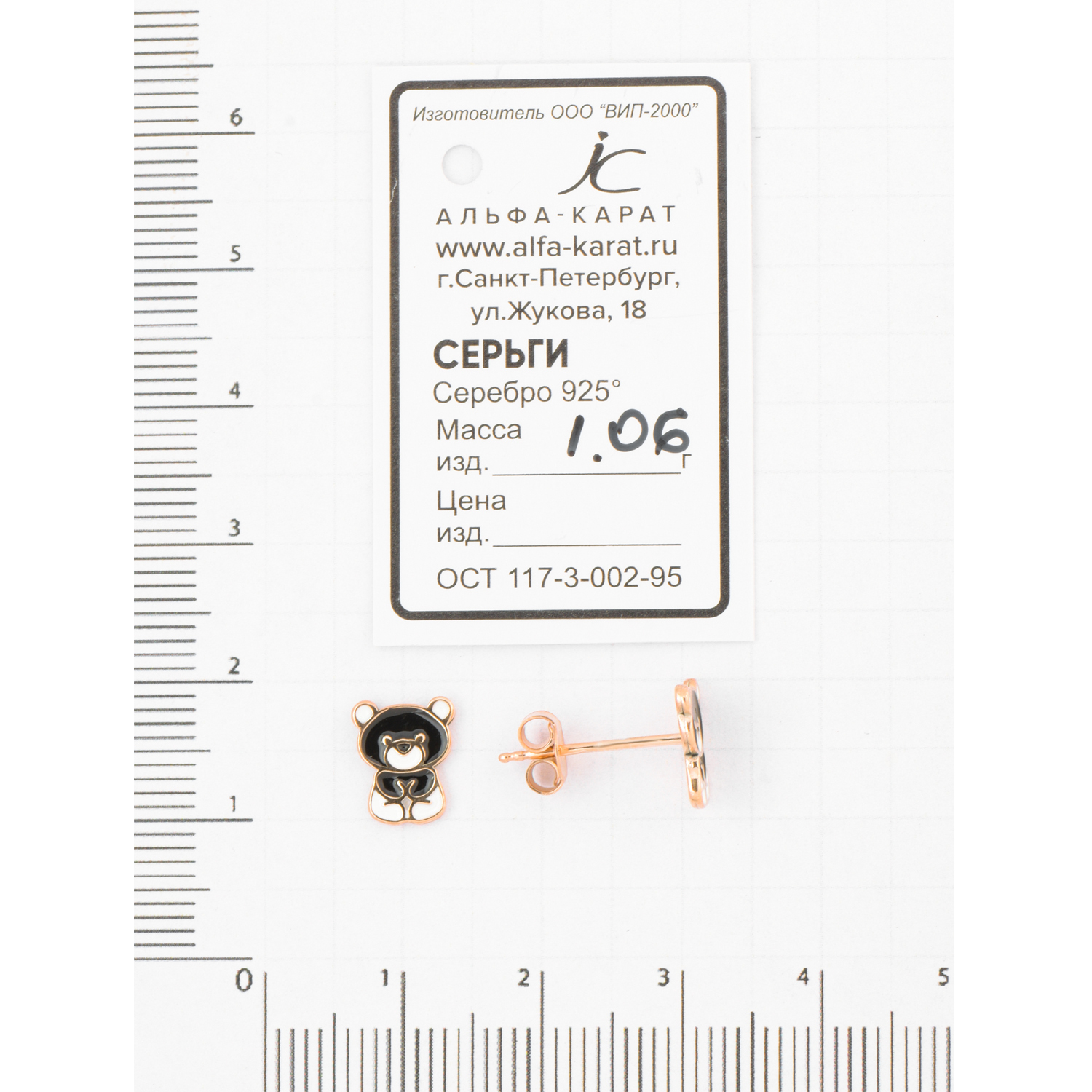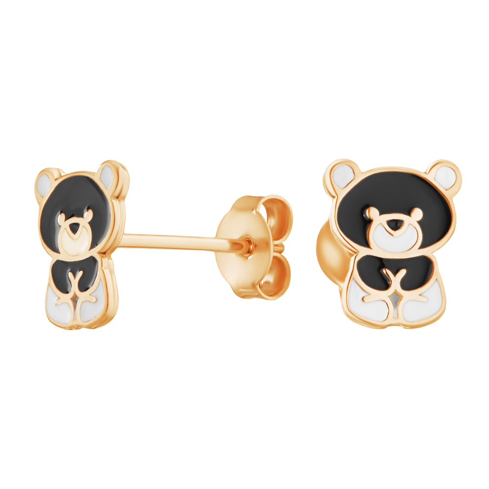 Ювелир Карат Серьги ювелирные серебряные пусеты для детей, гвоздики "Мишки" с эмалью, серебро 925