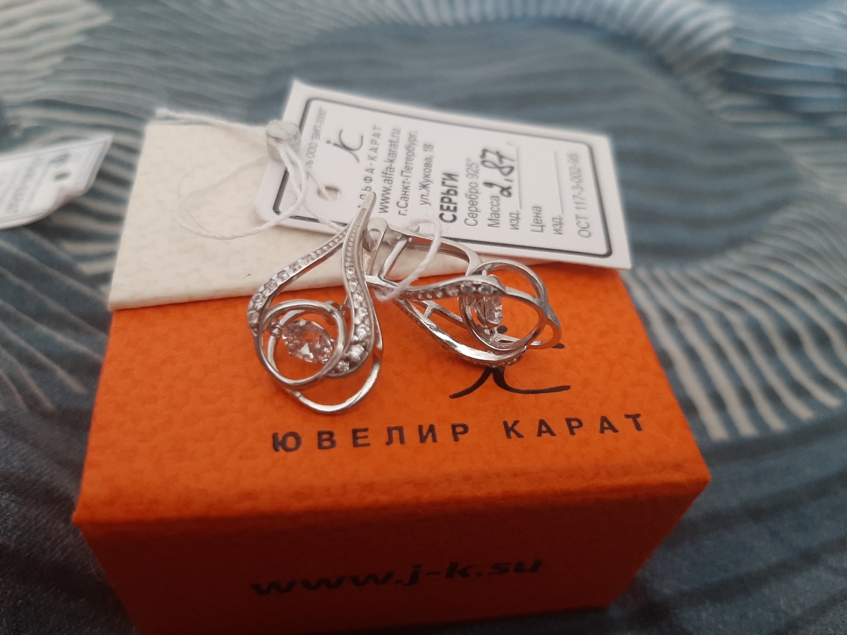 Ювелир Карат Серьги серебряные с танцующими качающимися фианитами