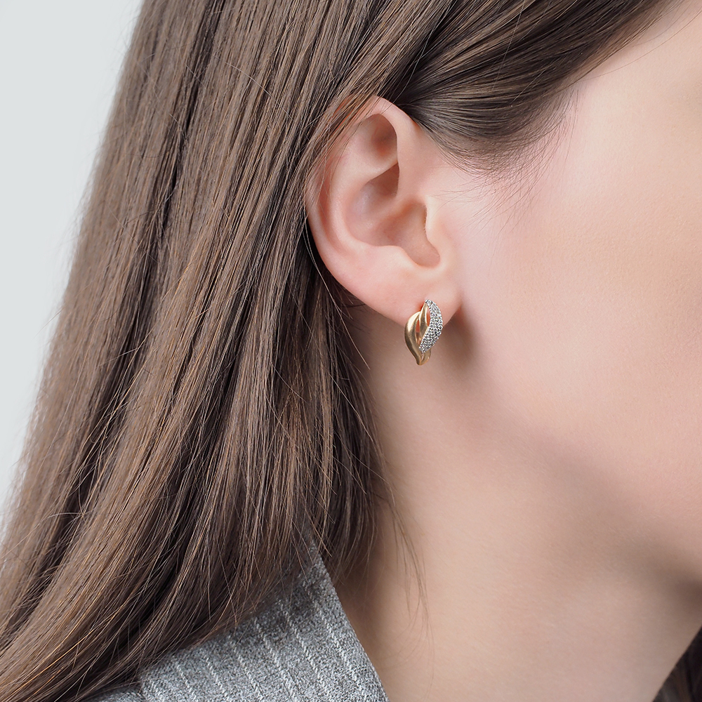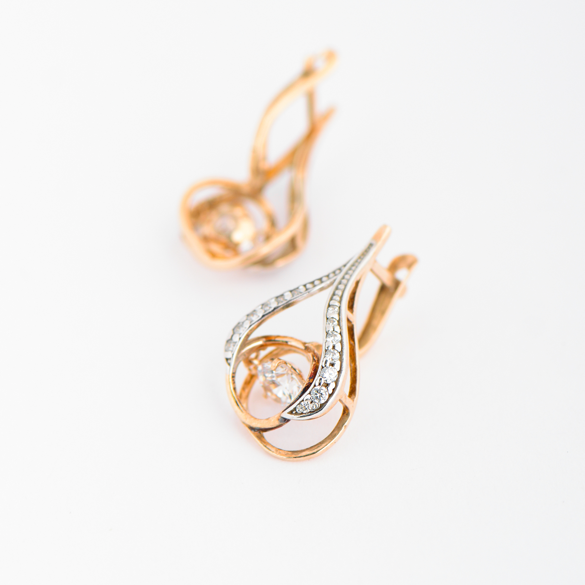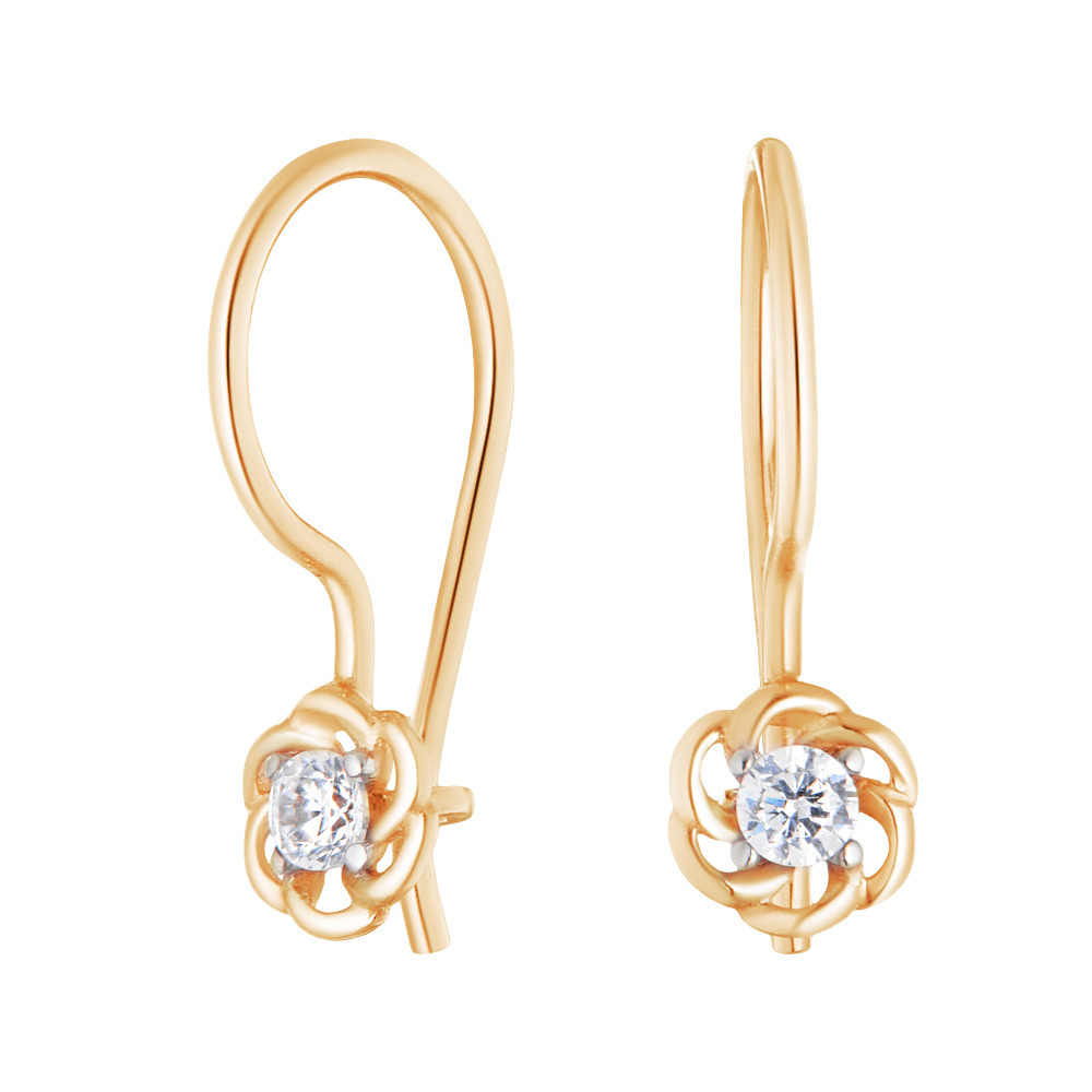 Ювелир Карат Серьги золотые детские "Цветы" с фианитами, золото 585