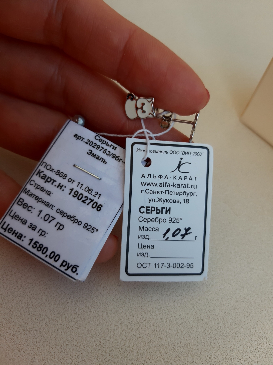 Ювелир Карат Серьги 2029753/9БГ-ЧГ