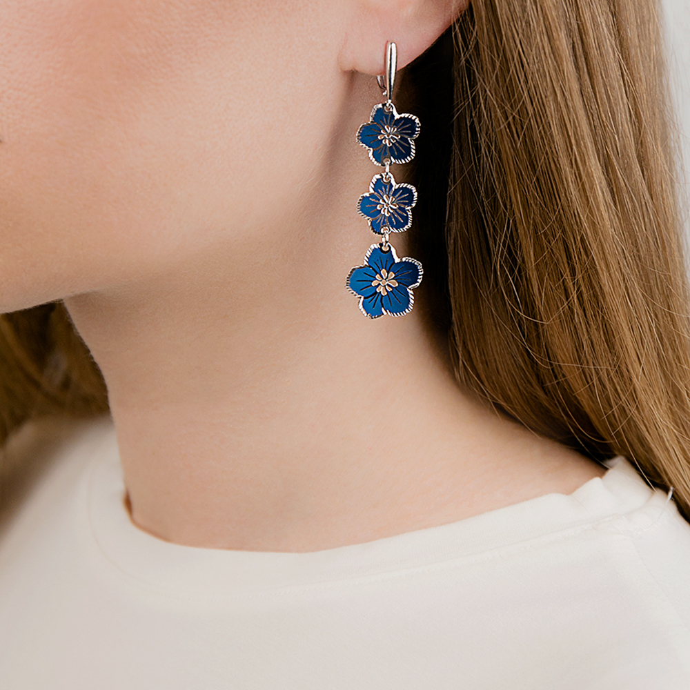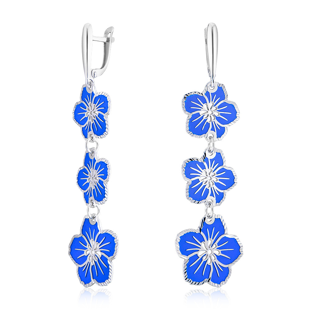 Ювелир Карат Серьги из серебра с витражной эмалью "Цветы"