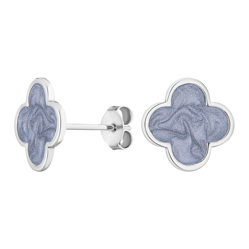 Ювелир Карат Серьги серебряные пусеты, гвоздики Клевер, четырехлистник, цветы с эмалью, серебро 925