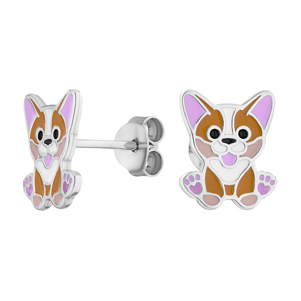 Ювелир Карат Серьги серебряные детские с эмалью "Собаки" 20210331/9БГ-БЕЖГ-ОХГ-РГ-ЧГ
