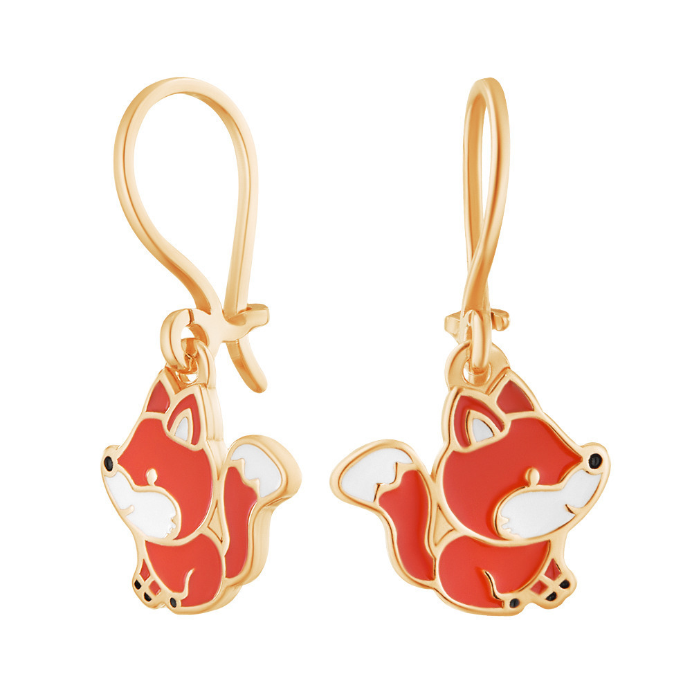 Ювелир Карат Серьги серебряные детские подвески "Лиса" с эмалью