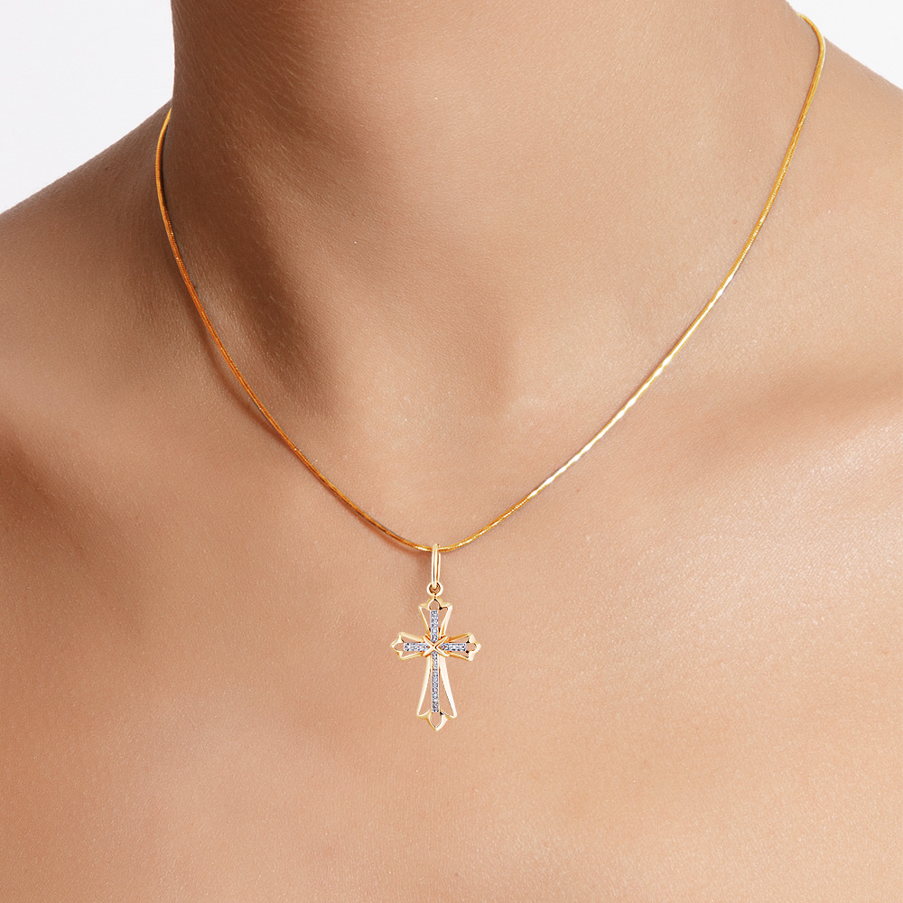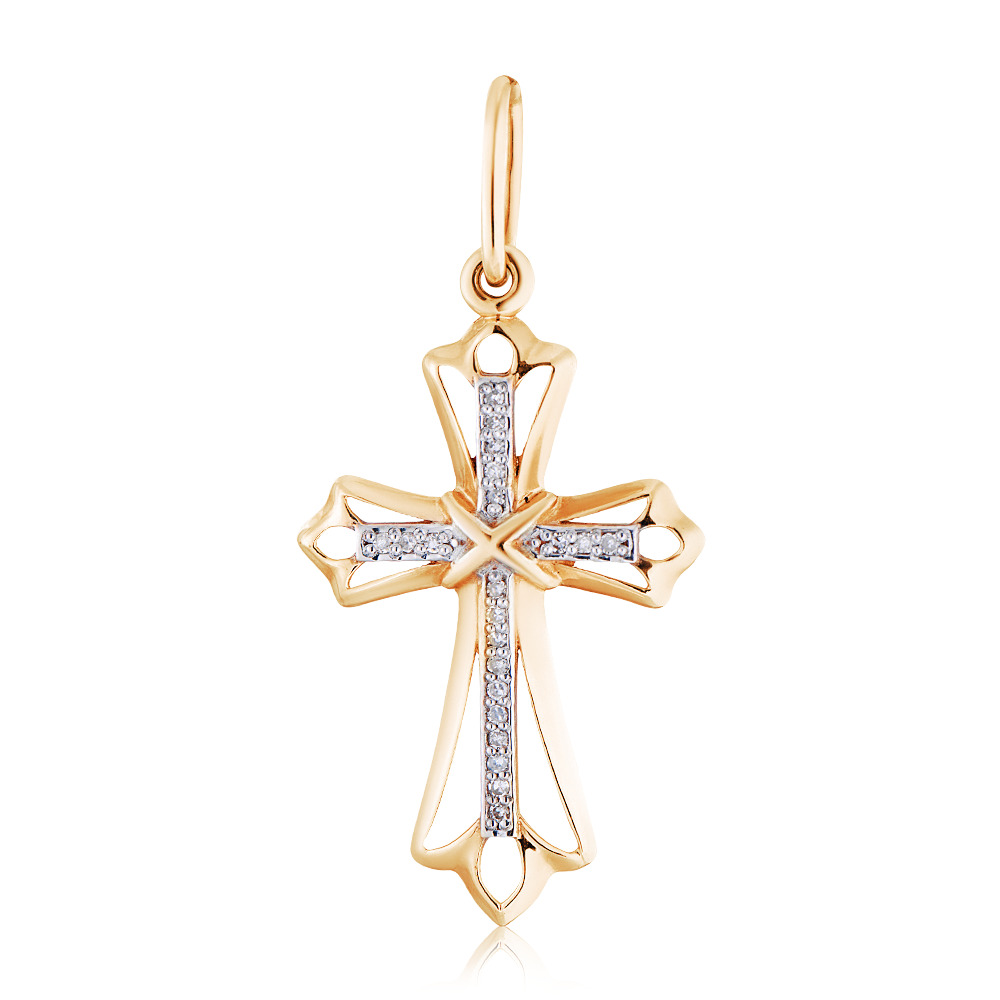 Ювелир Карат Крестик золотой с бриллиантами, золото 585