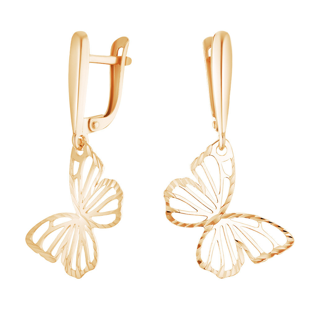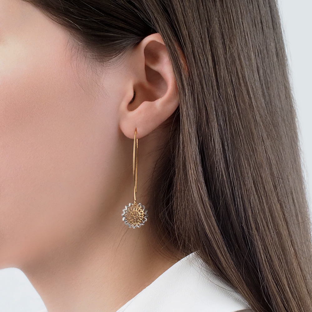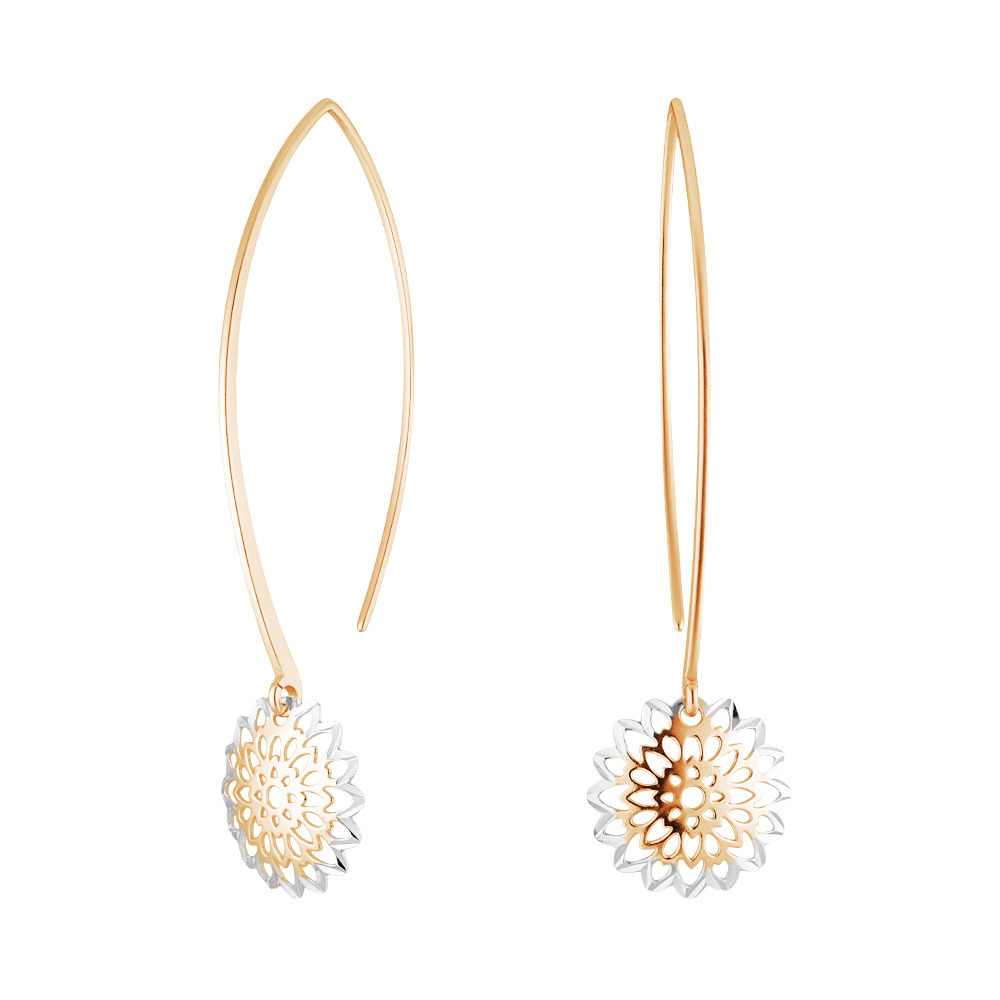 Ювелир Карат Серьги ювелирные серебряные длинные протяжки "Цветы", серебро 925, позолота