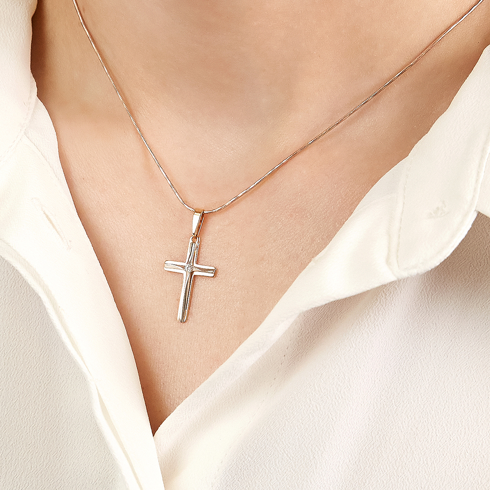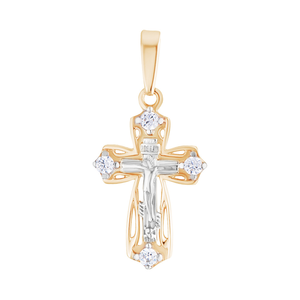 Ювелир Карат Крестик золотой с фианитами, золото 585