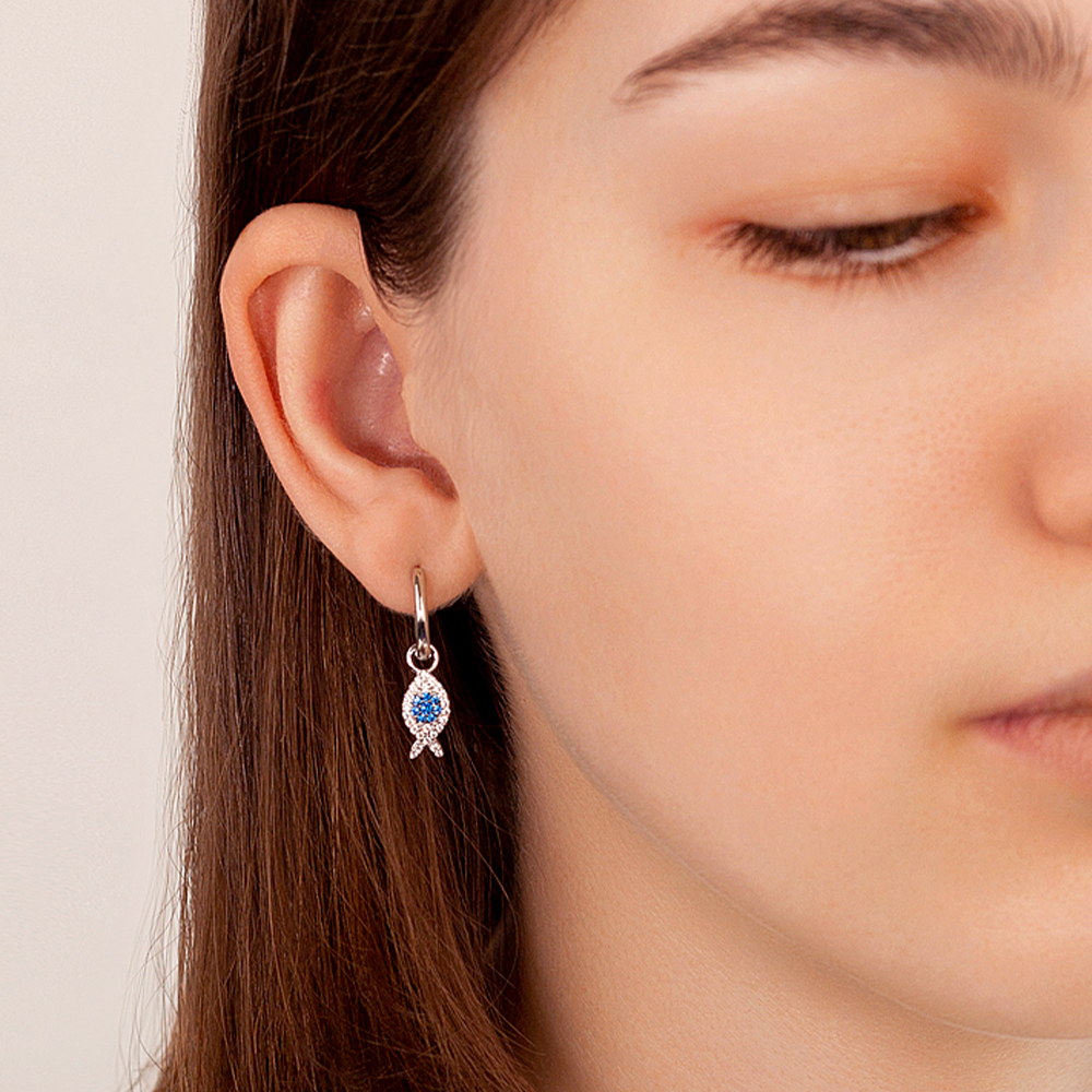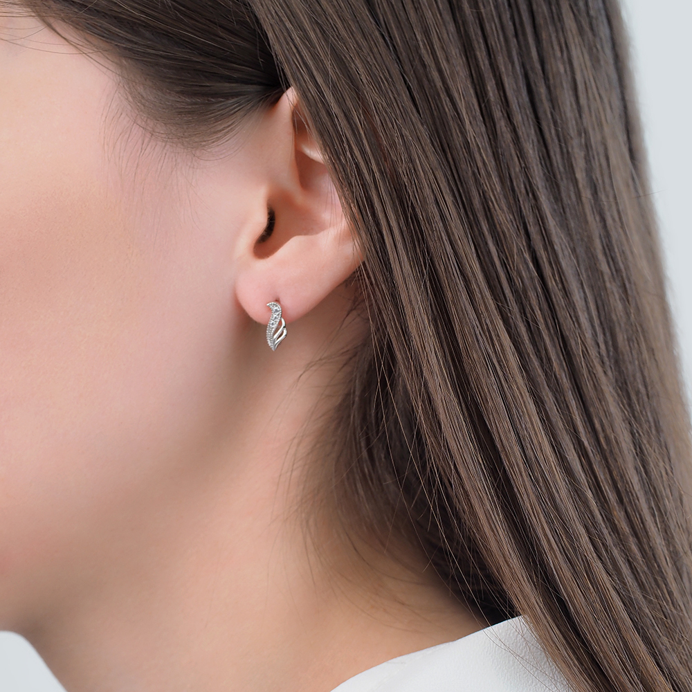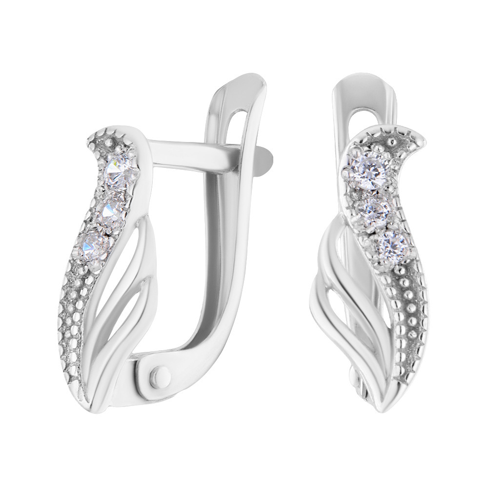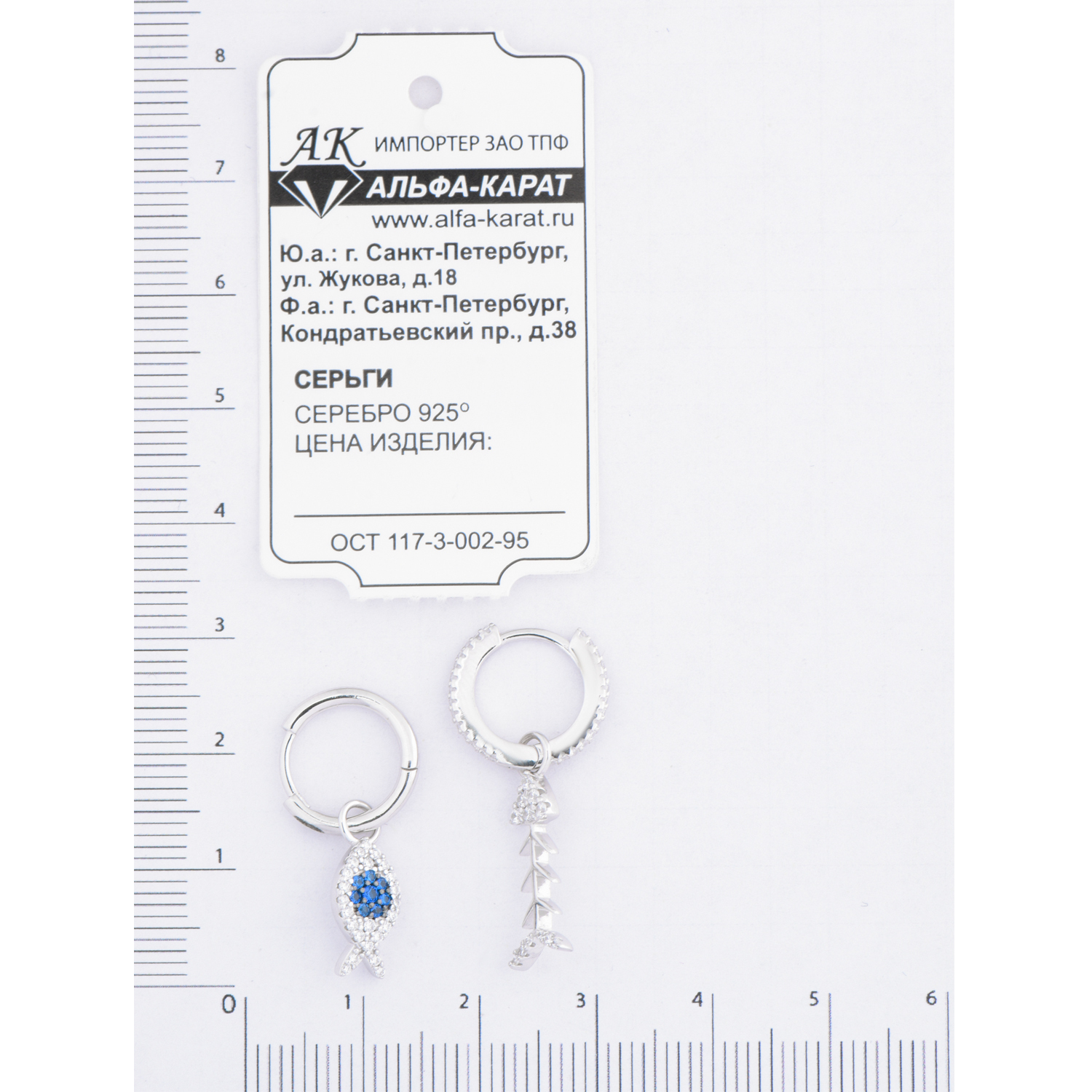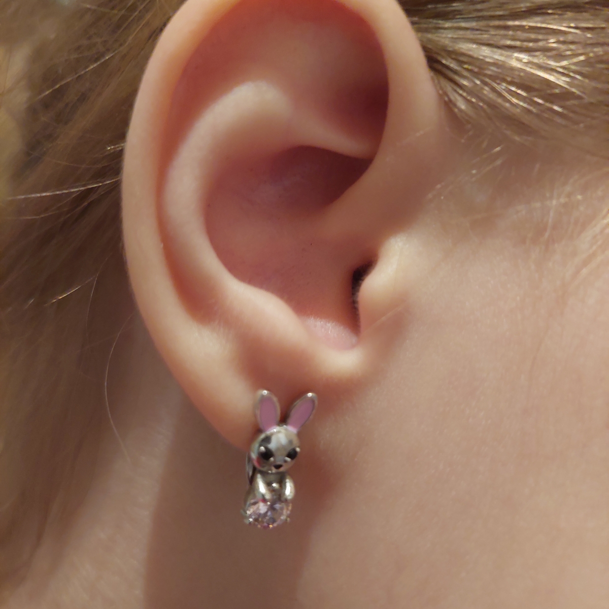 Ювелир Карат Серьги серебряные детские "Заяц" с эмалью и фианитами, серебро 925