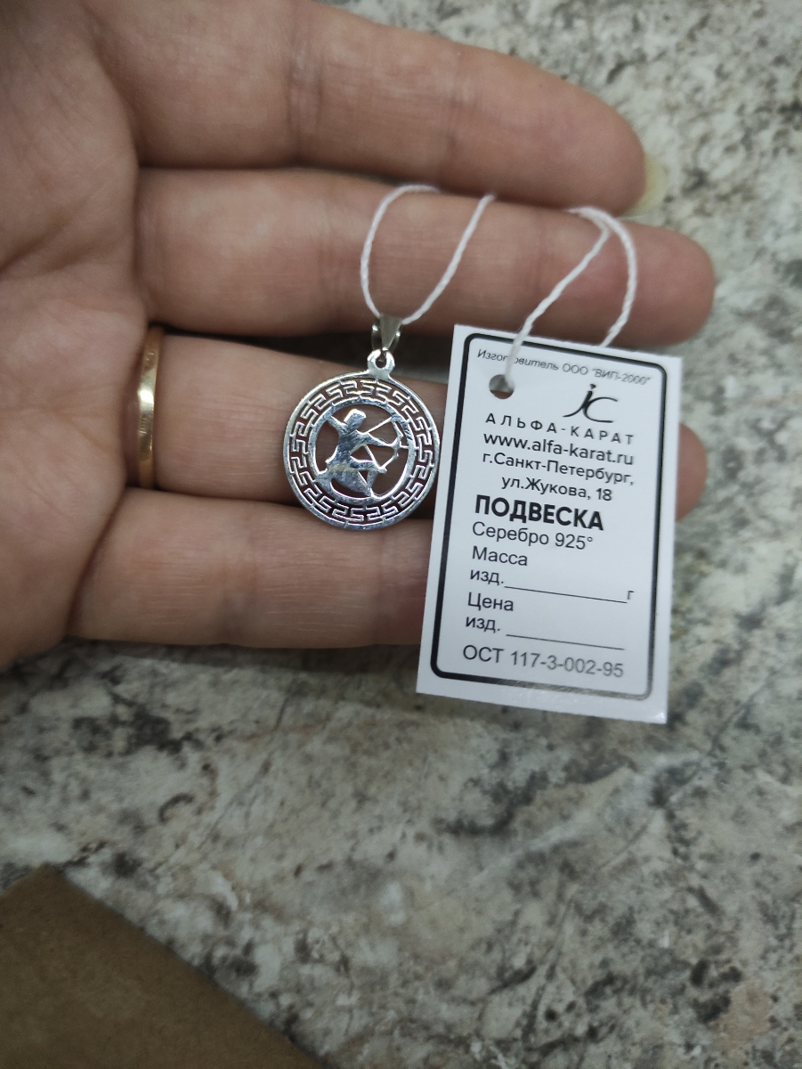 Ювелир Карат Подвеска Кулон серебряный знак зодиака СТРЕЛЕЦ, серебро 925
