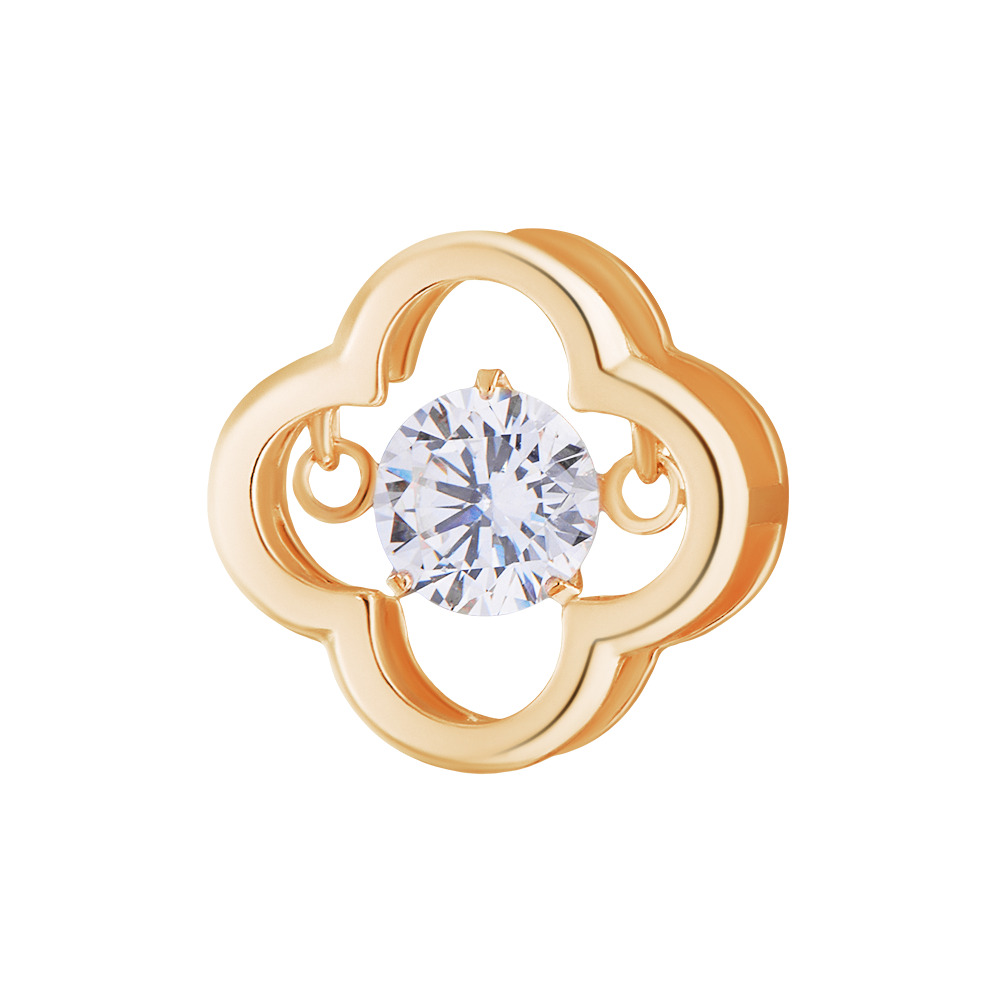 Ювелир Карат Подвеска Кулон серебряный Клевер с танцующим качающимся фианитом, серебро 925