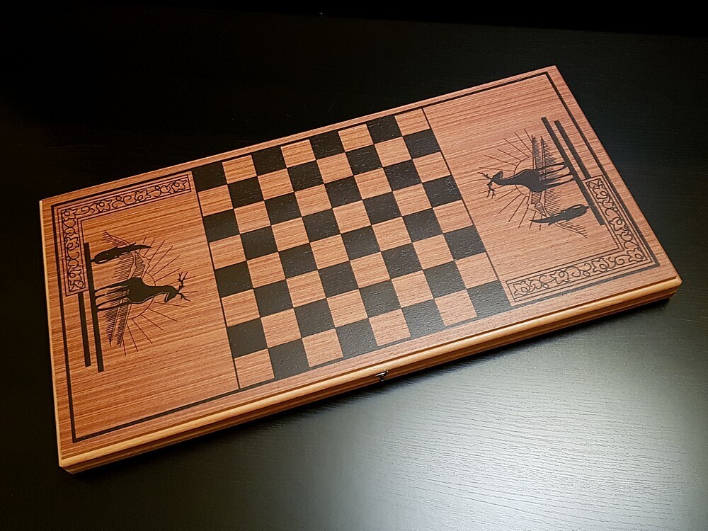 Шахматы, шашки, нарды (3 в 1) большие, 60х60 см, шпон темный, Z-TERRA