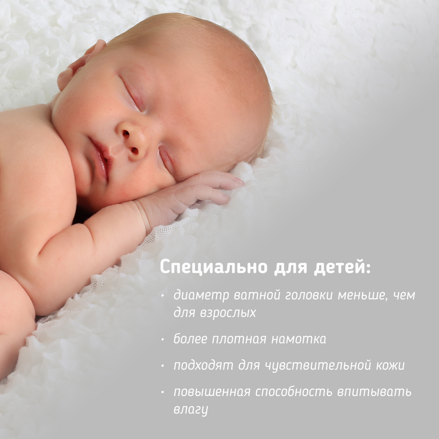 zabota2 Детские ватные палочки, ультратонкие, 180 шт., хлопок, целлюлоза