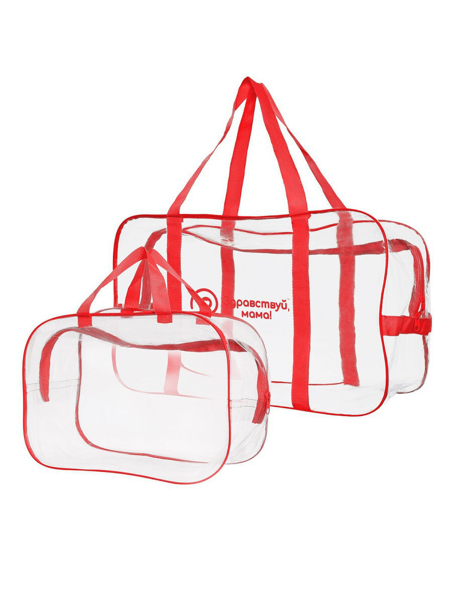 СУМКА В РОДДОМ прозрачная "ЗДРАВСТВУЙ, МАМА!" набор сумок из 2 шт.(большая сумка+средняя сумка)