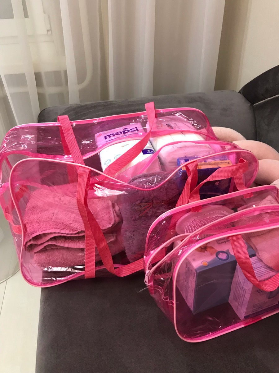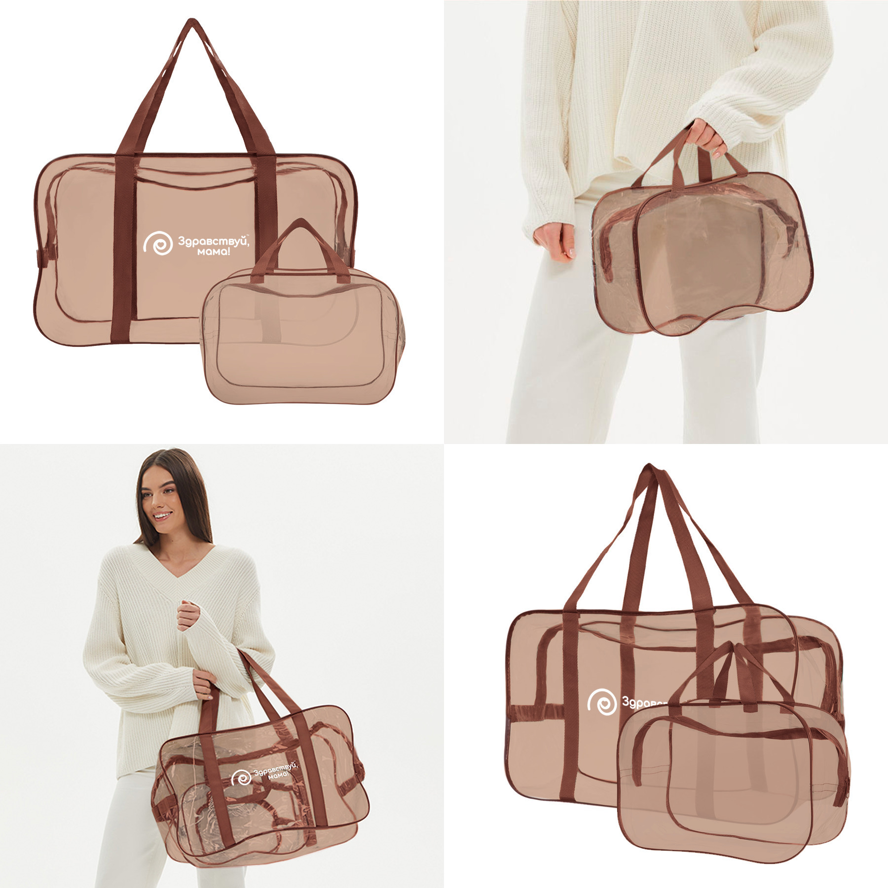 СУМКА В РОДДОМ прозрачная для мамы и малыша ЗДРАВСТВУЙ МАМА набор сумок из 3 шт. (большая сумка+2 средние сумки)
