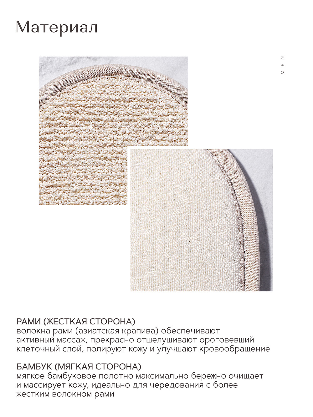 Zeitun Массажная варежка для душа из бамбукового полотна и рами двухсторонняя