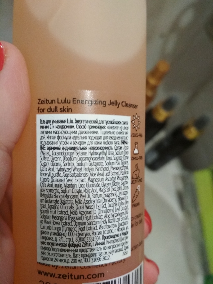 Zeitun Гель для умывания LULU энергетический для сияния кожи с витамином С и мандарином, 200 мл