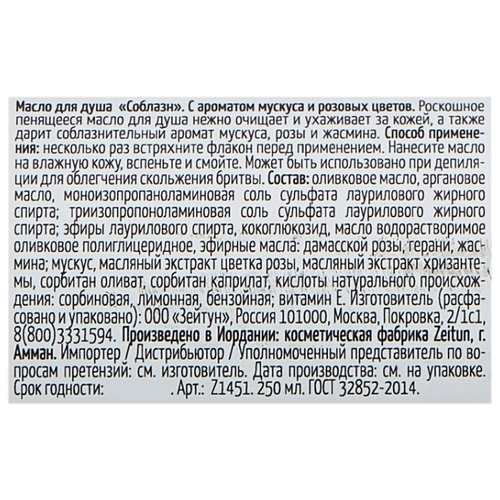 Zeitun Масло для ванны Соблазн с ароматом мускуса и розовых цветов 100 мл
