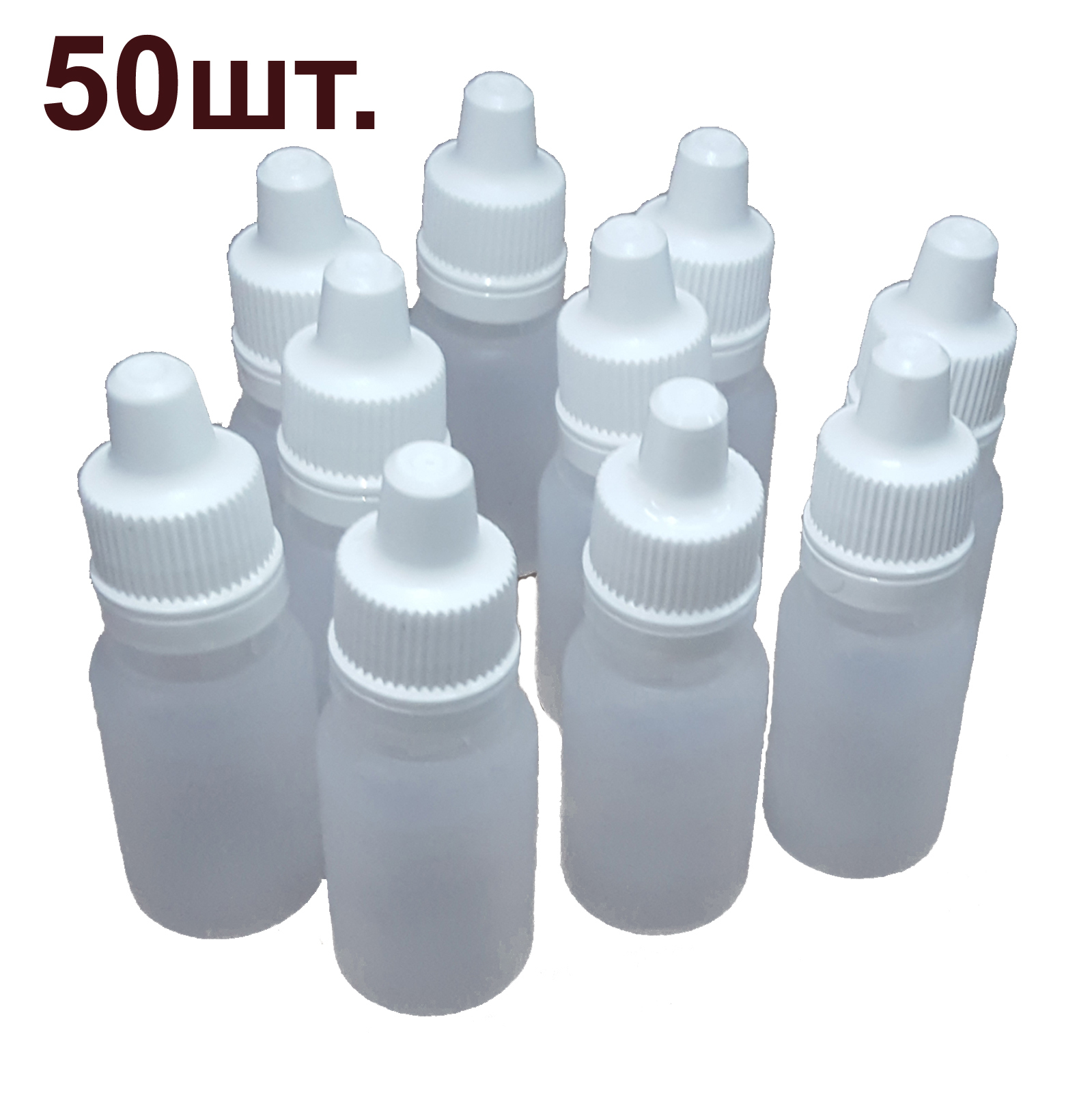 Флаконы 50шт (бутылочка) пластиковые 10мл с крышкой и дозатором