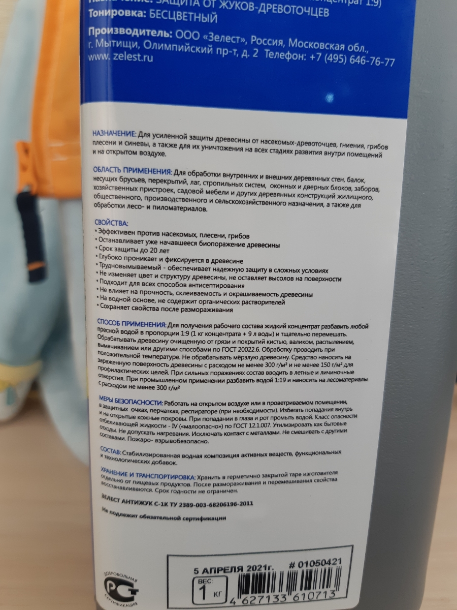 Антисептик для защиты деревянных конструкций "Зелест А-1" ЭкоБио бесцветный 10 кг.