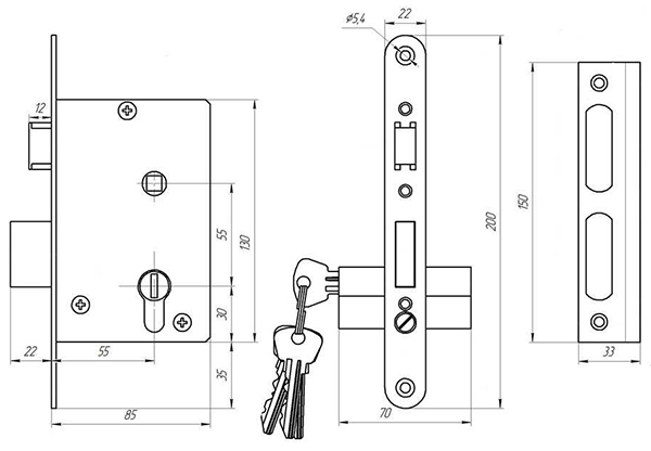 Замок врезной, сувальдный, для входной двери, Зенит ЗВ8-4