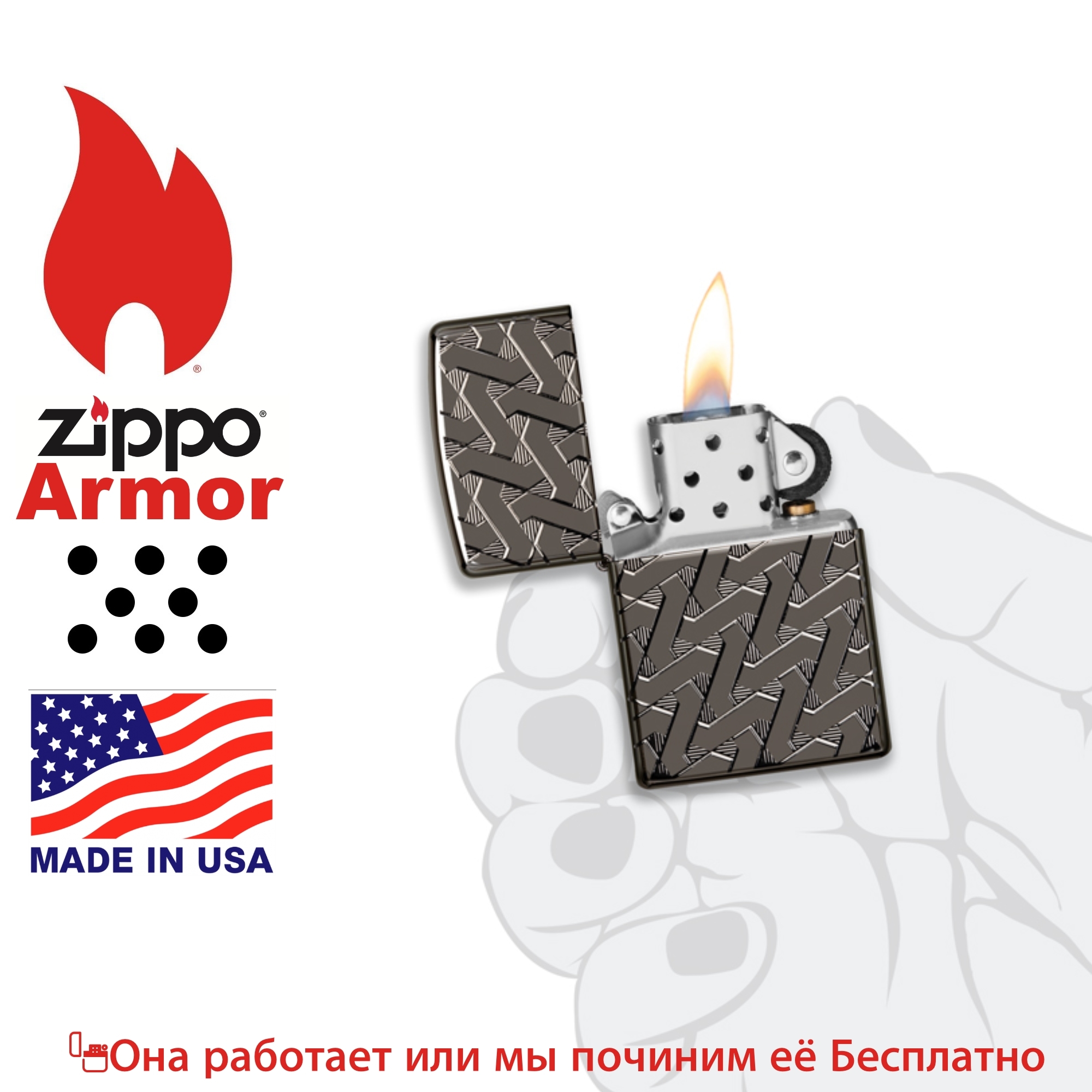Зажигалка ZIPPO Armor ОРИГИНАЛ-Покрытие Black Ice-Глянцевая Зиппо Армор MADE IN USA 49173
