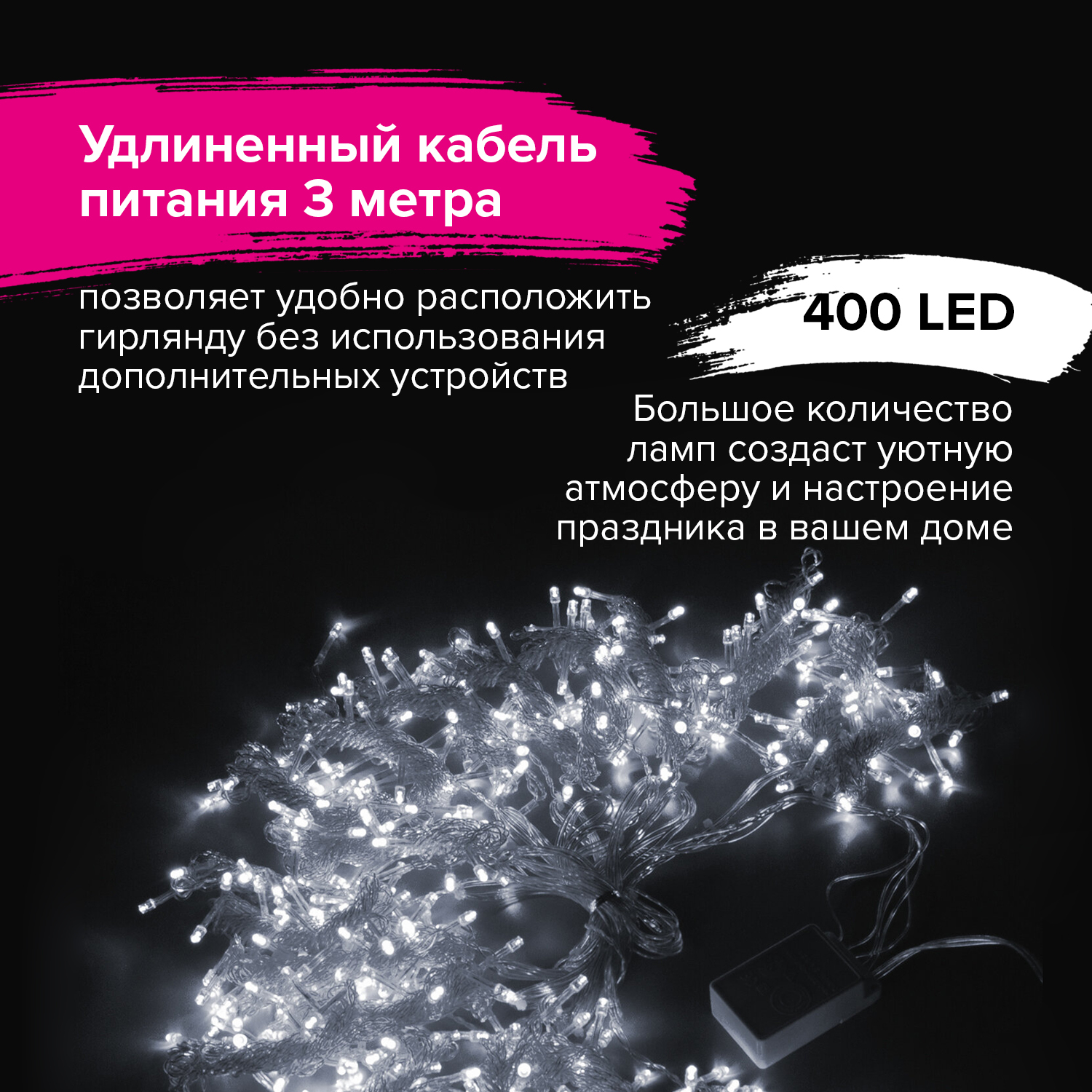 Электрогирлянда интерьерная Занавес Золотая сказка Светодиодная 400 ламп, 3 м, питание От сети 220В