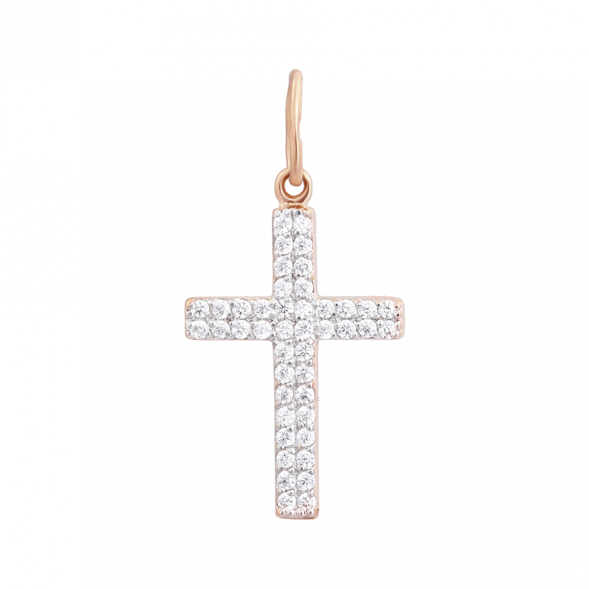 Золото Дисконт Крестик с фианитом из золота 585 пробы