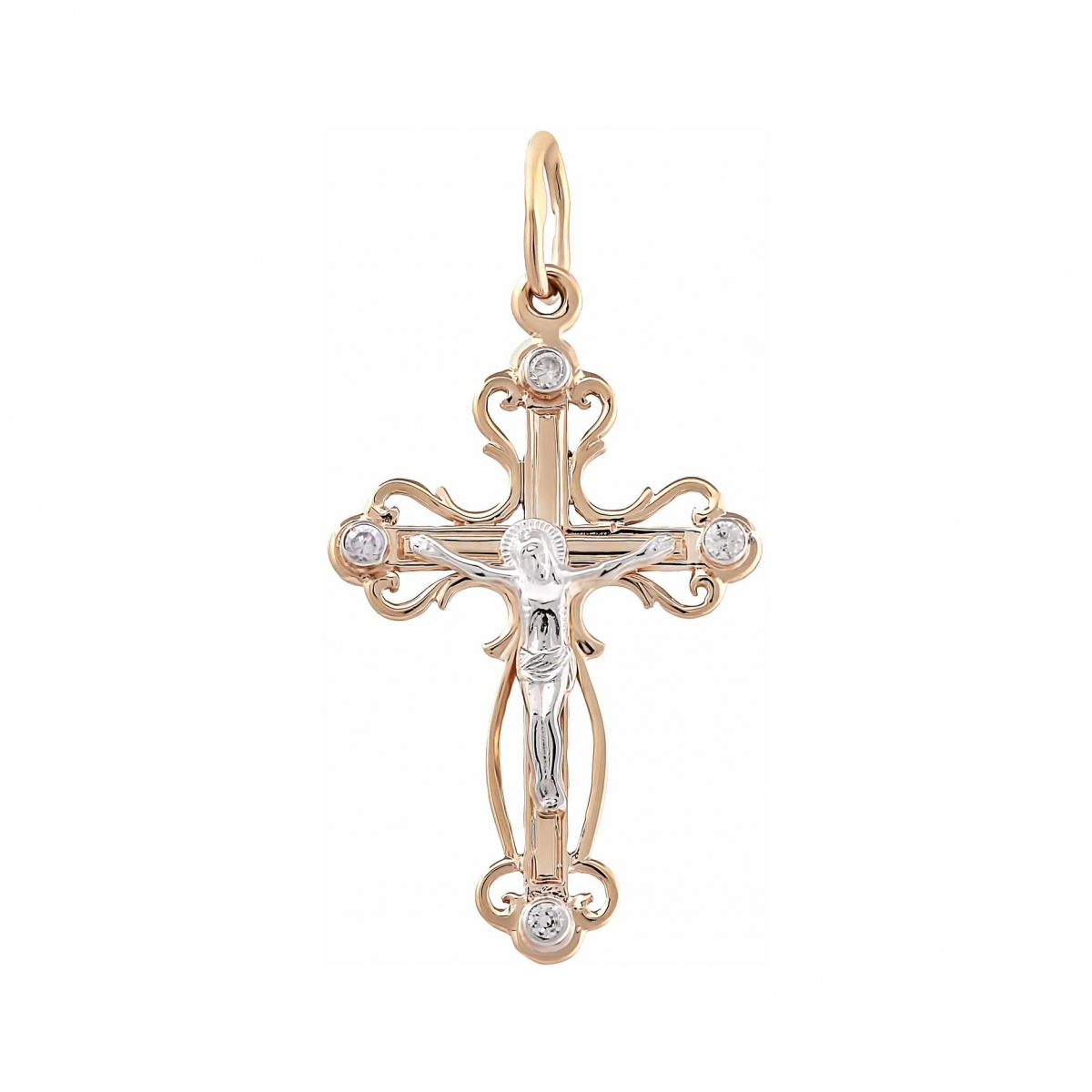 Золото Дисконт Крестик с фианитом из золота 585 пробы
