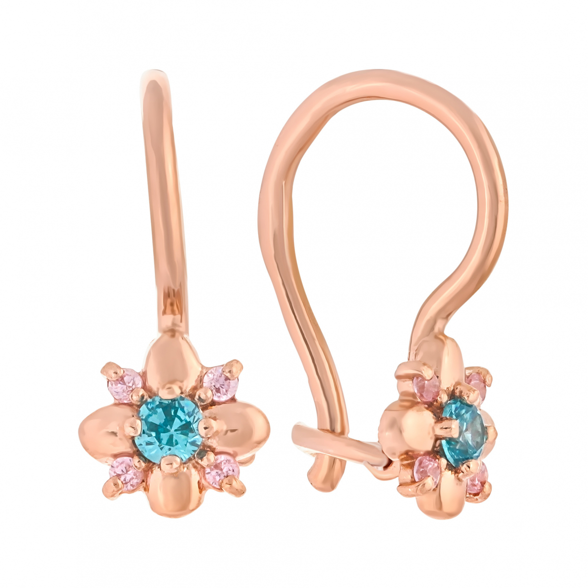 Золото Дисконт Серьги детские с фианитом из золота 585 пробы