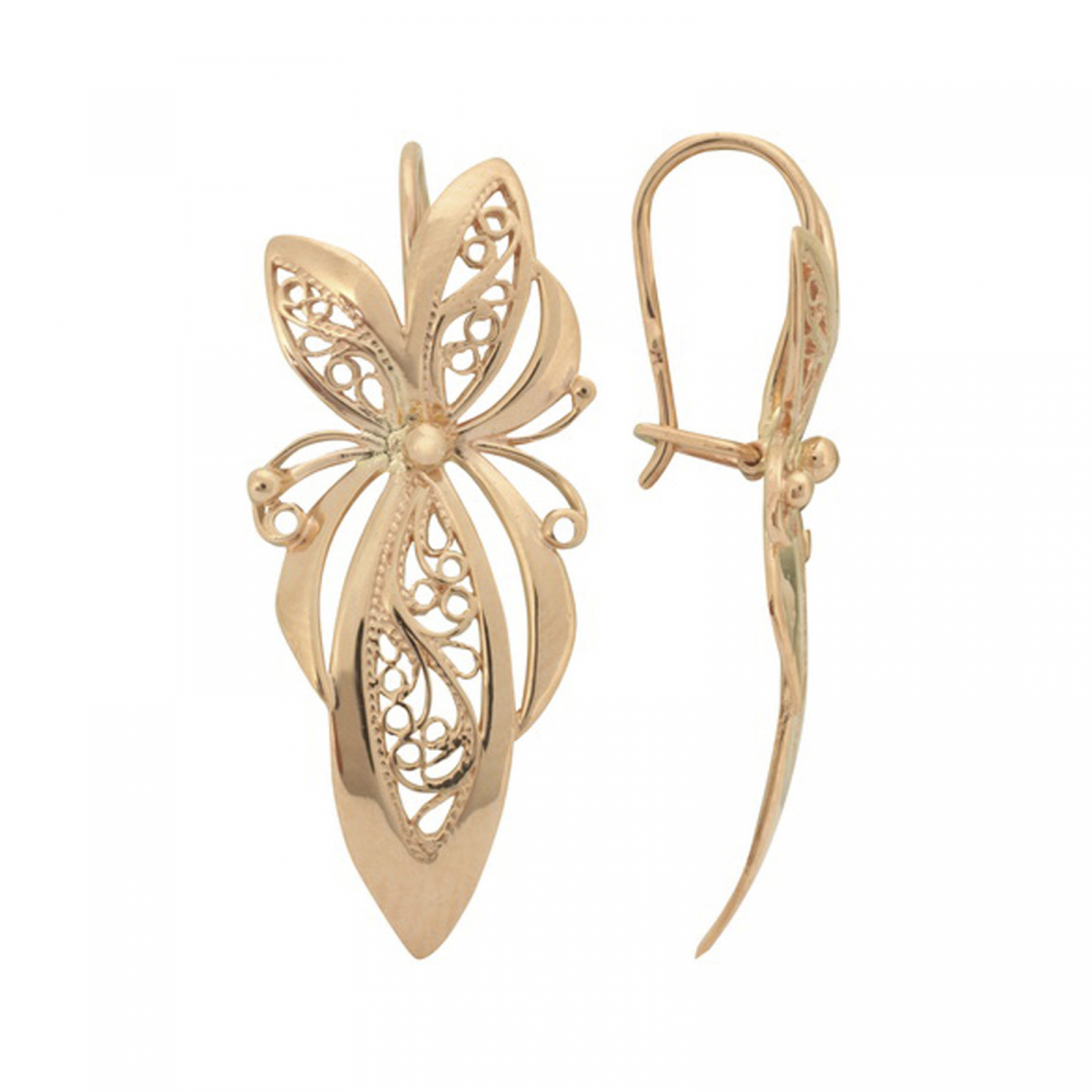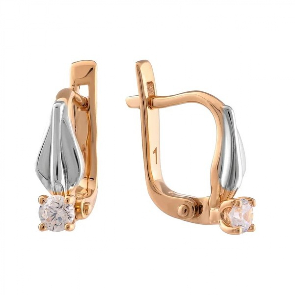 Золото Дисконт Серьги с фианитом из золота 585 пробы