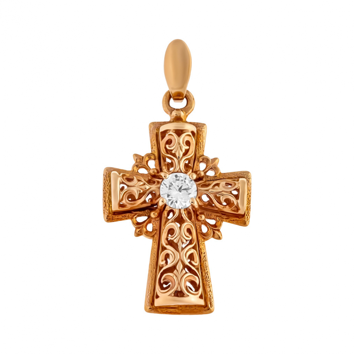 Золото Дисконт Крестик с фианитом из золота 585 пробы