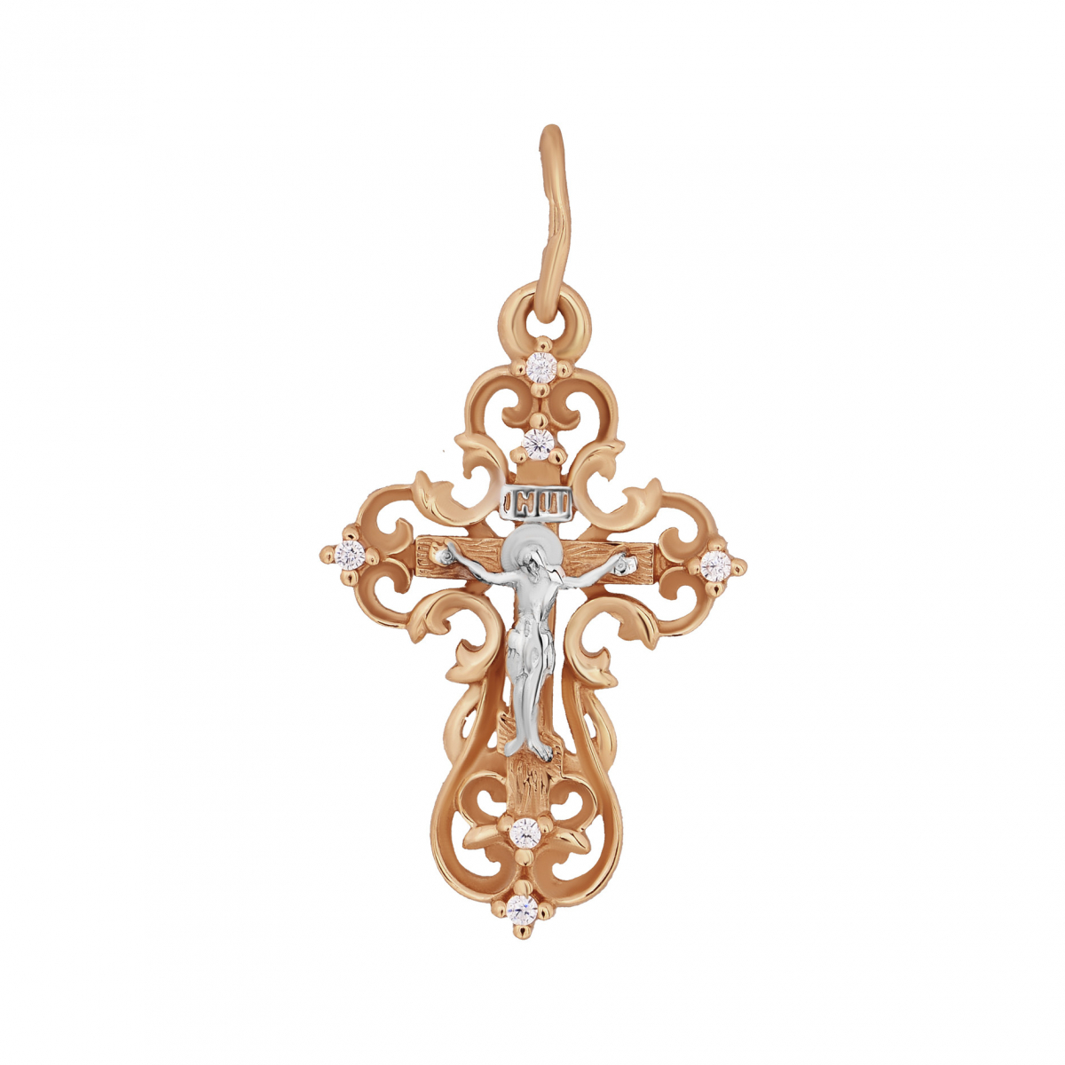 Золото Дисконт Крестик с фианитом из золота 585 пробы