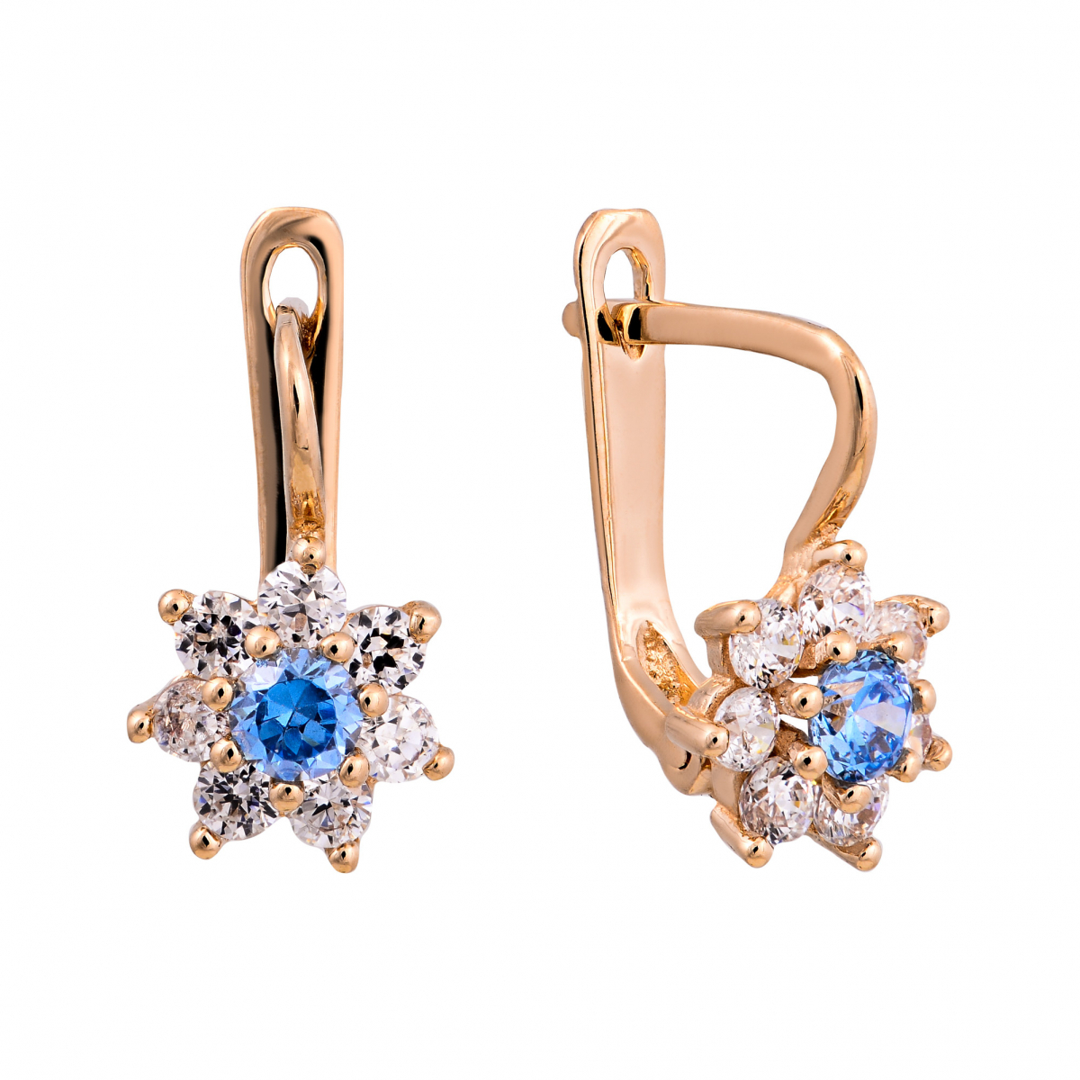 Золото Дисконт Серьги детские с фианитом из золота 585 пробы