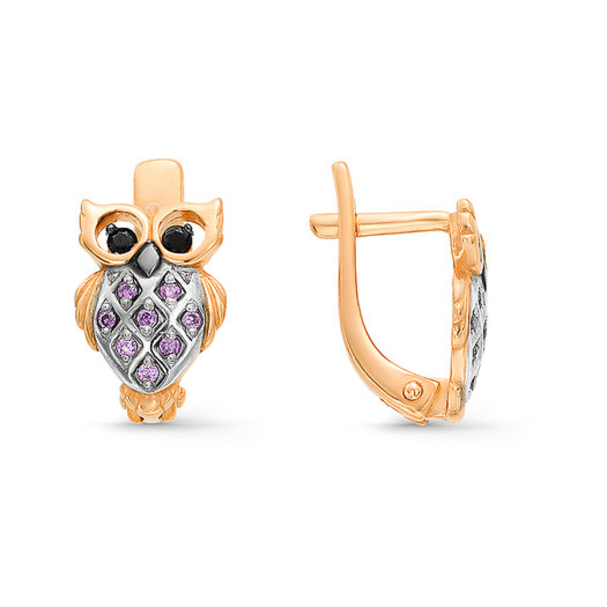 Золото Дисконт Серьги детские с фианитом из золота 585 пробы