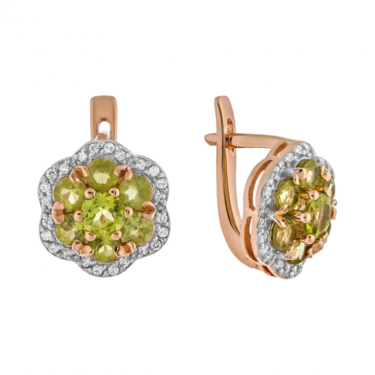 Золото Дисконт Серьги с хризолитом и фианитом из золота 585 пробы