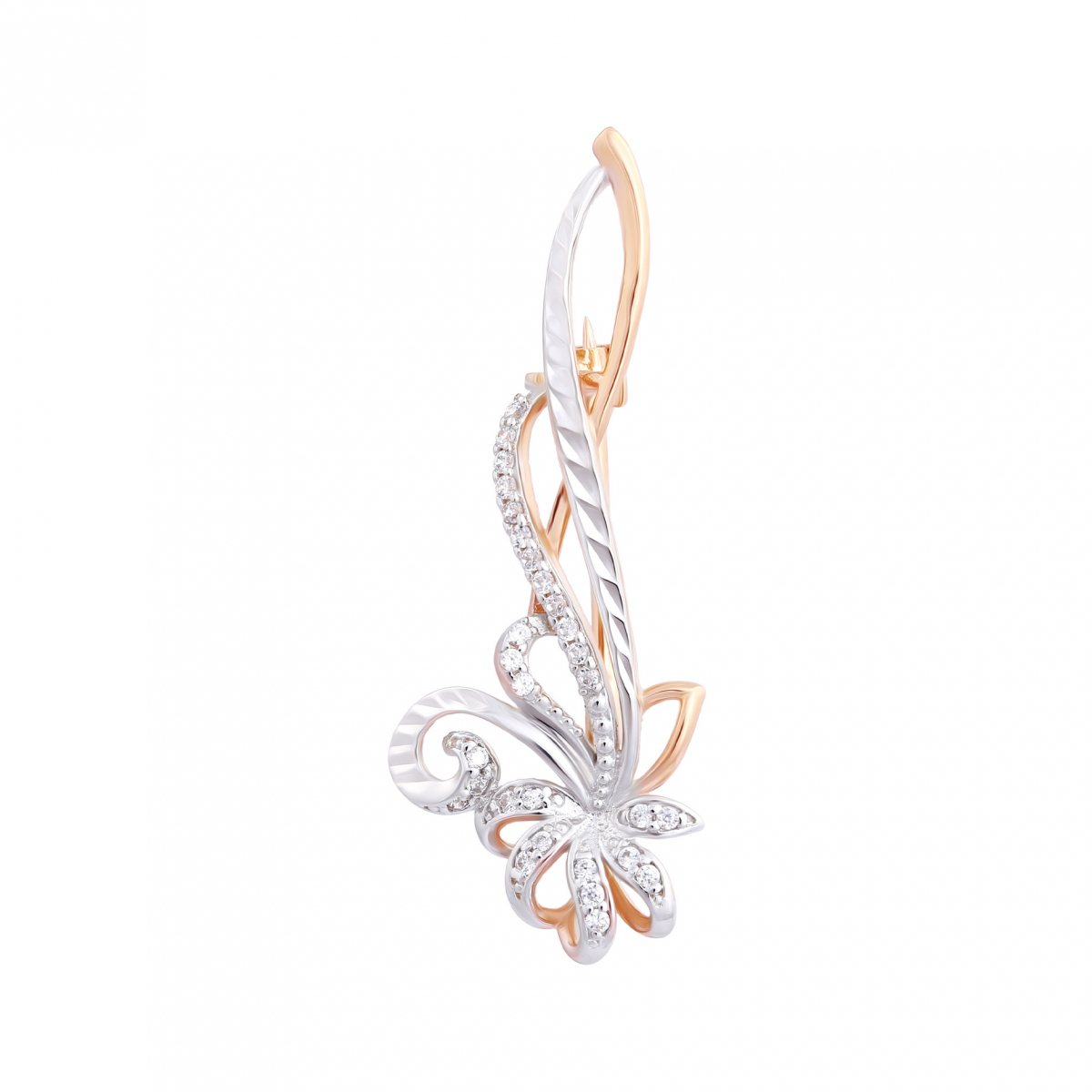 Золото Дисконт Брошь с фианитом из золота 585 пробы