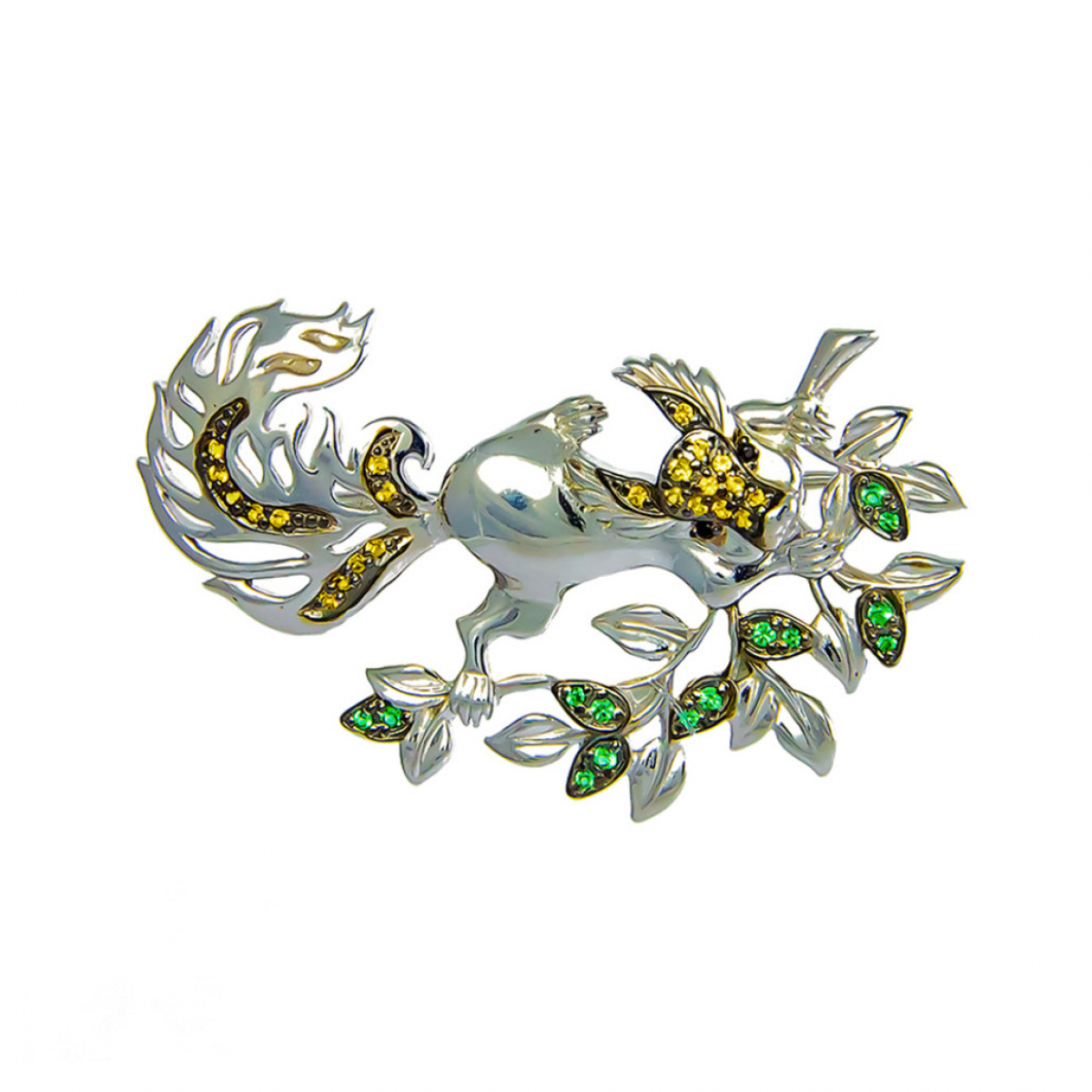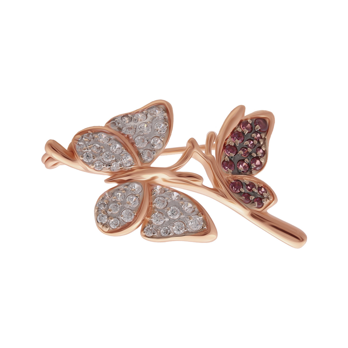 Золото Дисконт Брошь с фианитом из серебра 925 пробы