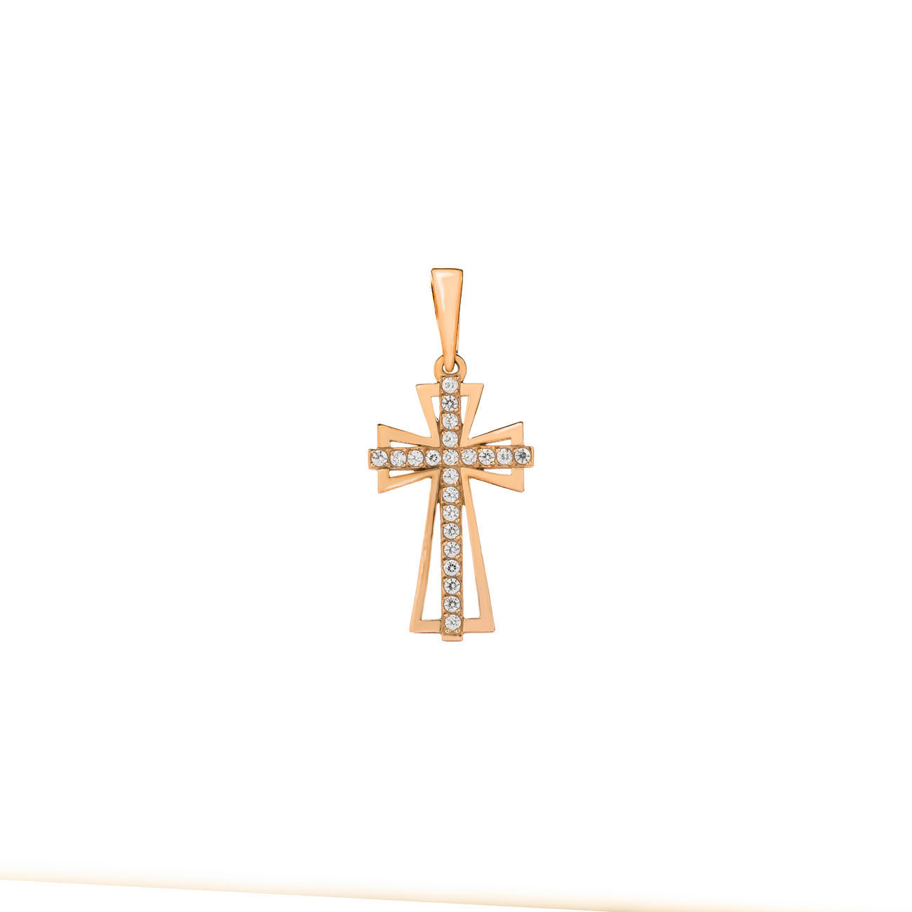 Золотой Кристалл Крестик женский золотой 585 пробы с фианитами