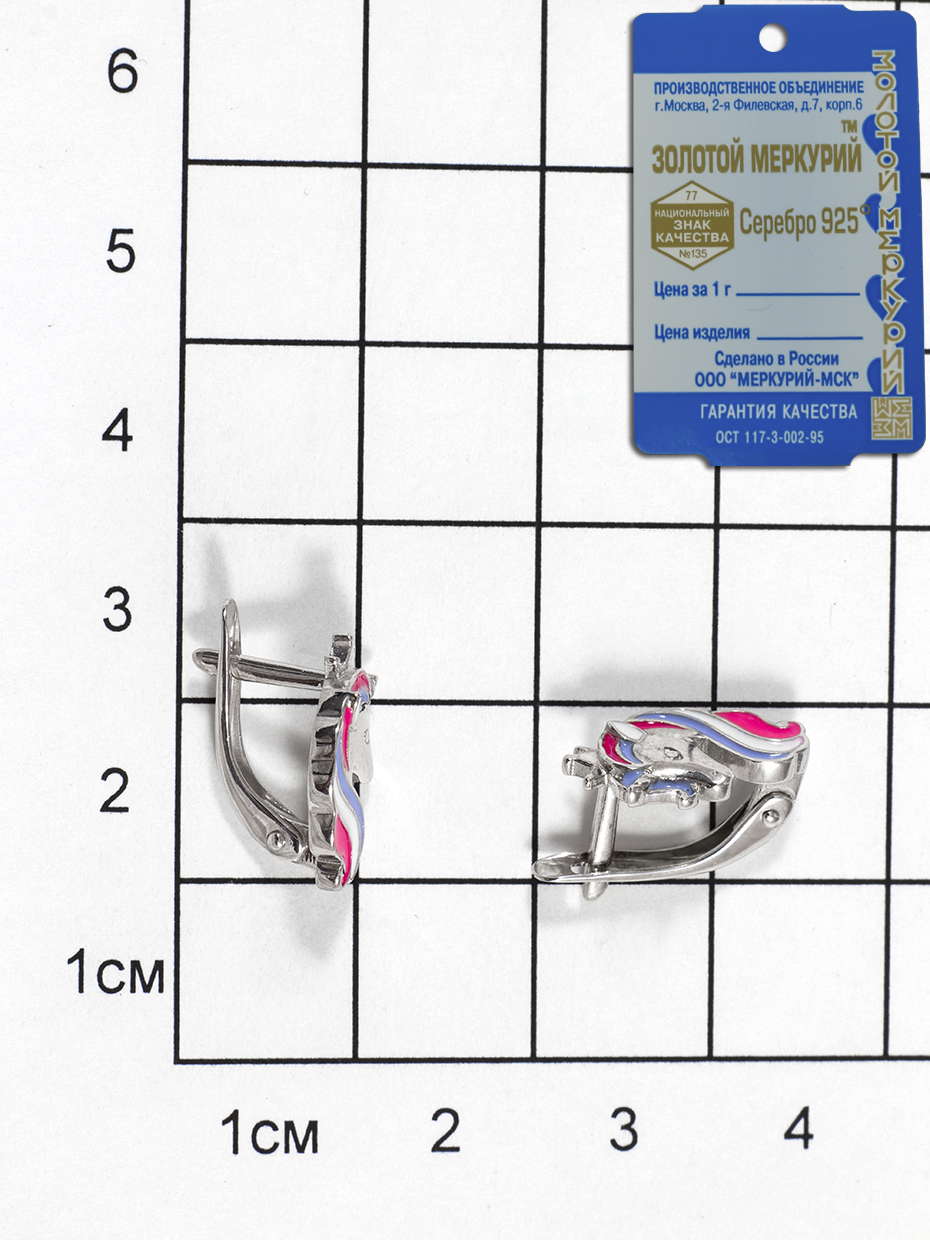 Золотой Меркурий Серьги "Волшебный единорог" серебро 925 (покрытие родий)/английский замок /детские